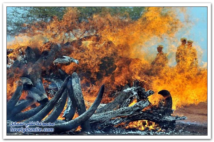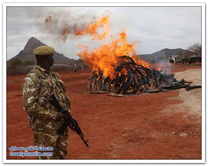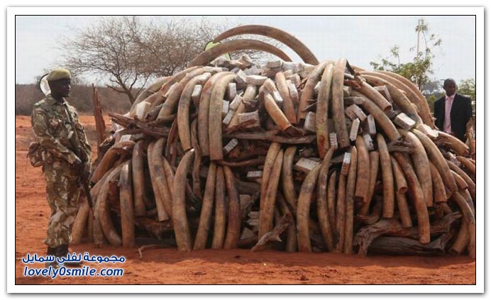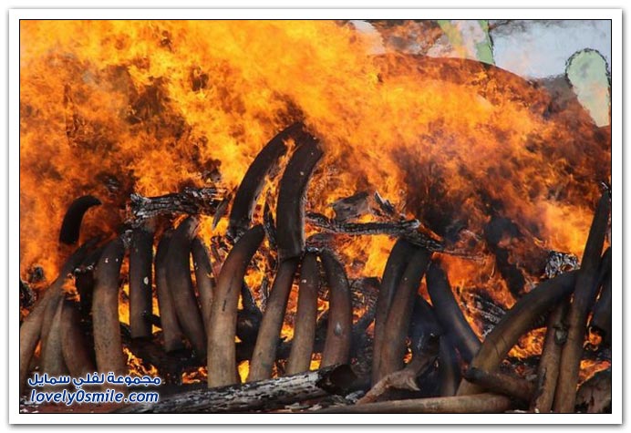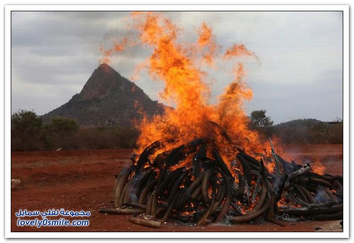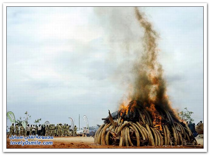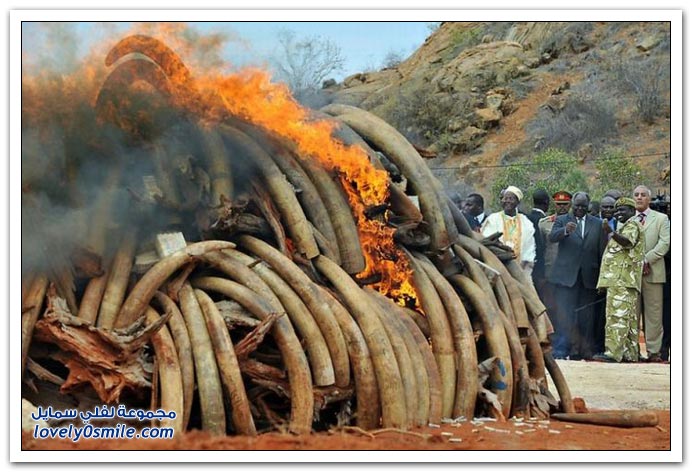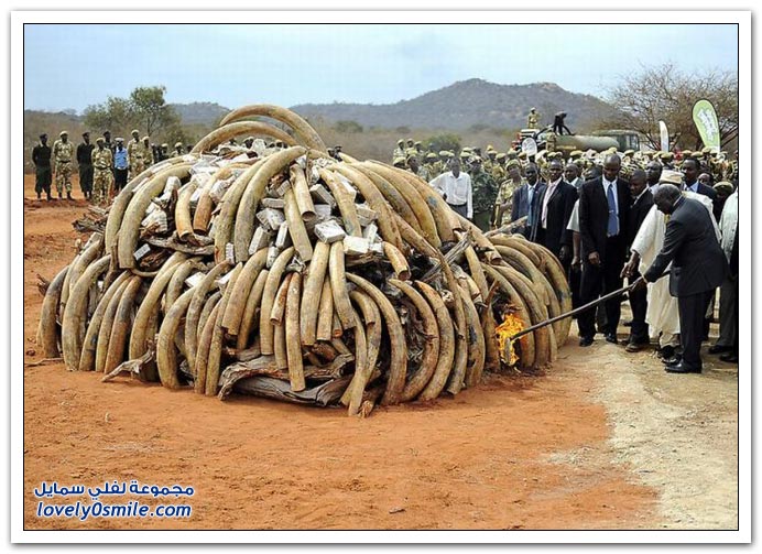 * تم حرق مئات من أنياب الفيلة في كينيا لتبين خطورة وضع الفيلة في كينيا جراء قتلها لأخذ العاج منها والمتاجرة به.