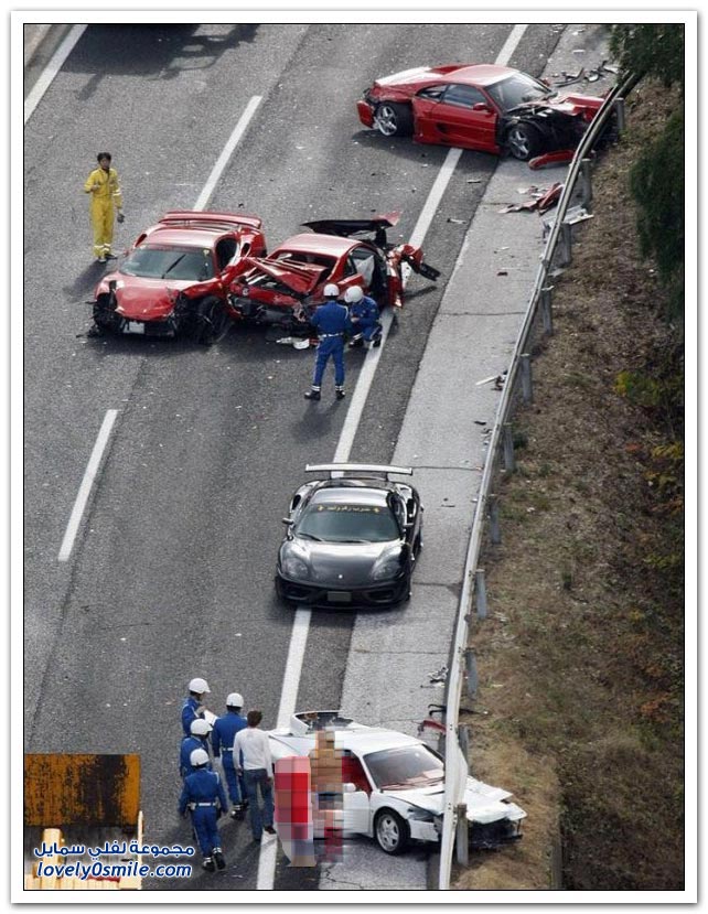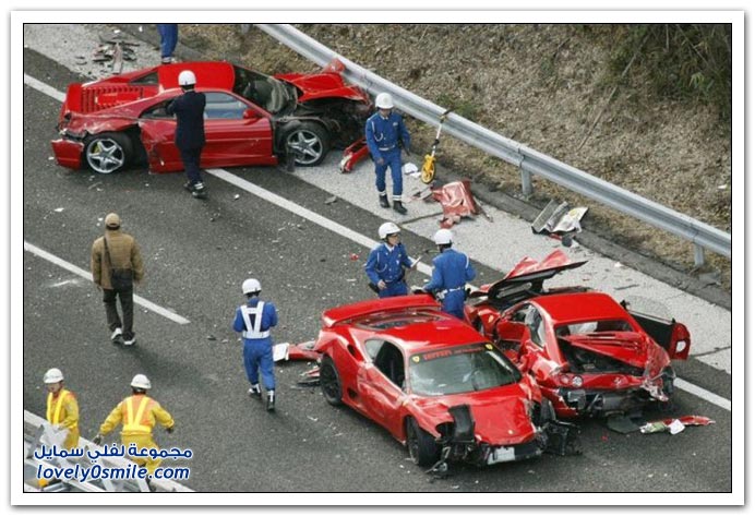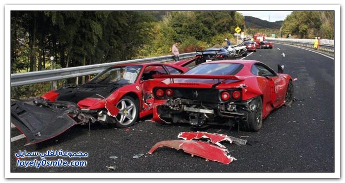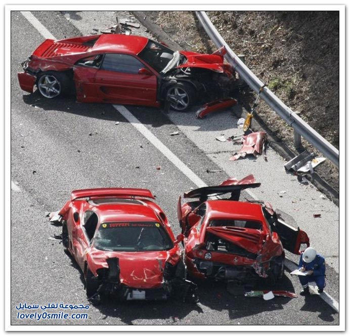 - وسبب أن هذا الحادث من أغلى الحوادث في العالم لأن عدد السيارات فيه 14 سيارة فاخرة منها 8 سيارات فيراري وثلاث سيارات مرسيدس ولامبرغيني وسيارتين أقل قيمة.