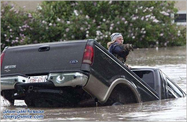 رجل وفي ينقذ قط معه أثناء الفيضانات في كندا