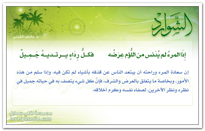 إذا المرءُ لم يدنس من اللؤم عرضُه فكل رِدَاءٍ يرتديهُ جميلُ