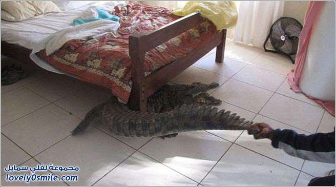 تمساح في غرفة نوم في زيمبابوي