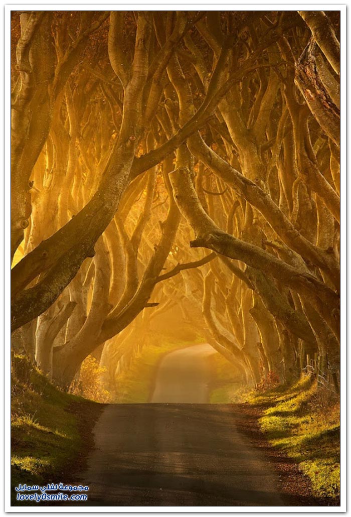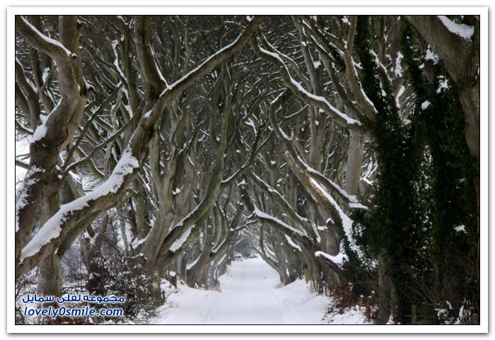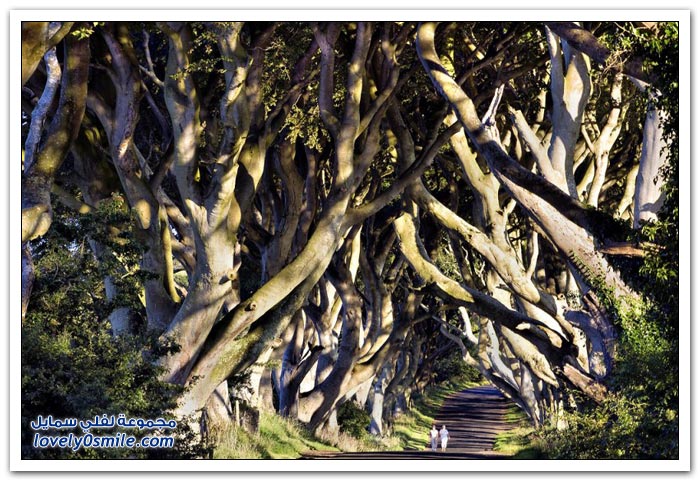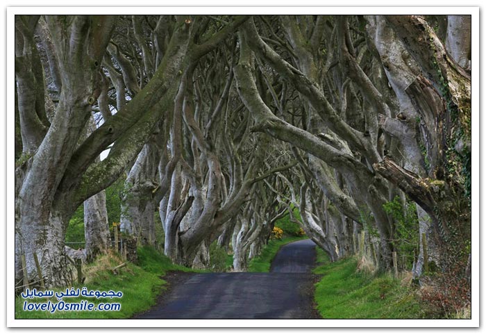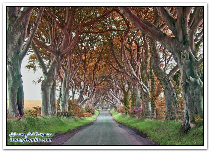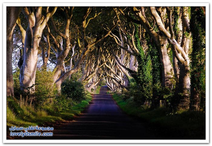 طريق متشابك الأغصان في ايرلندا الشمالية ويطلق عليه أسوار الظلام