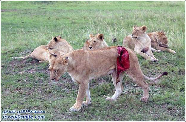 إنقاذ لبوة أصابها جاموس بجرح كبير