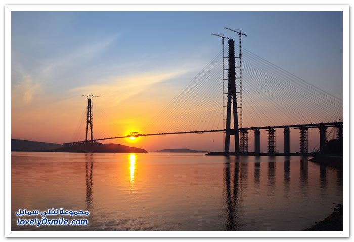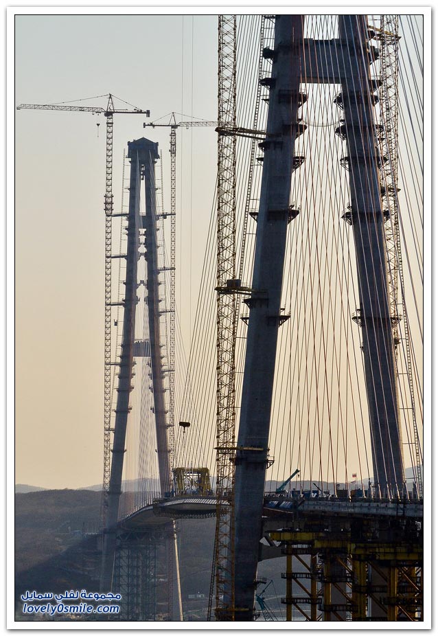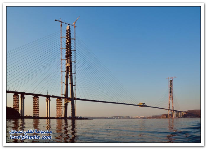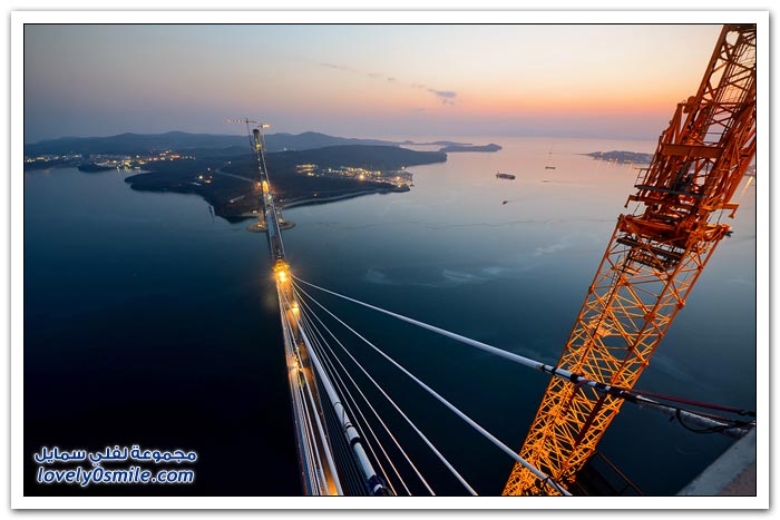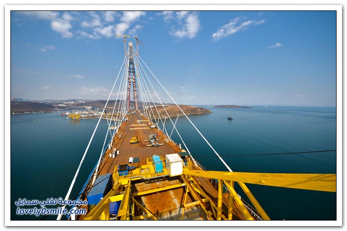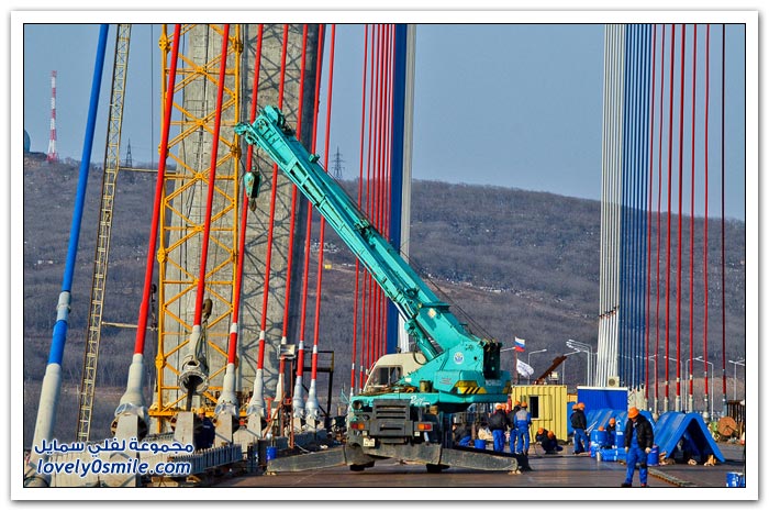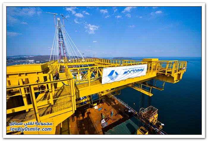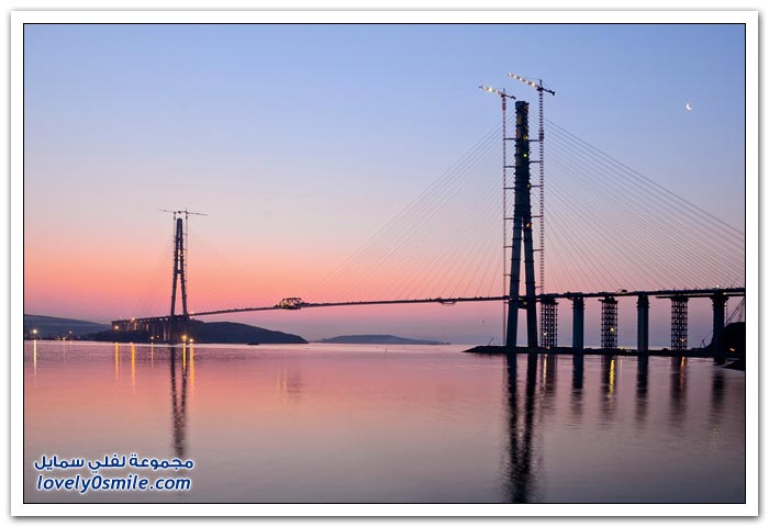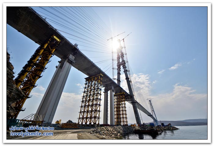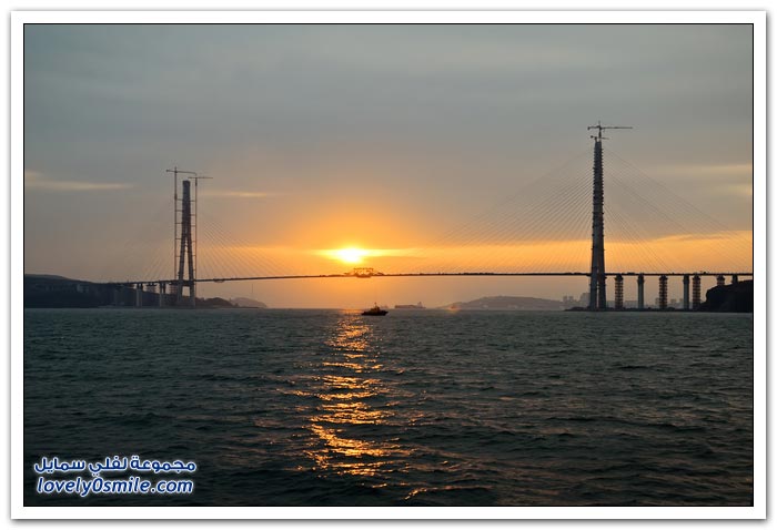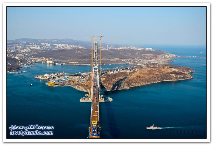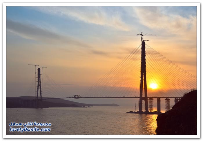 * يتم بناء جسر جزيرة فلاديفوستوك الروسية في مضيق البوسفور في إطار إعداد الجزيرة لقمة الايبك في عام 2012.