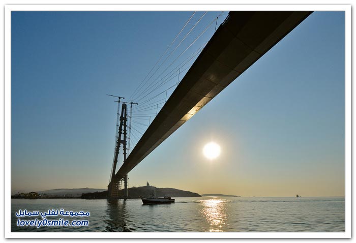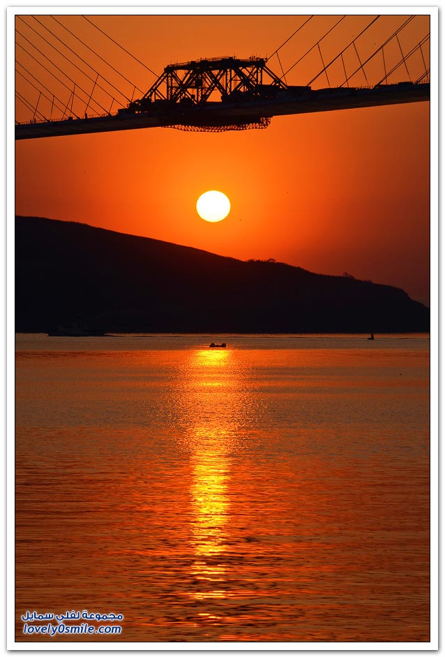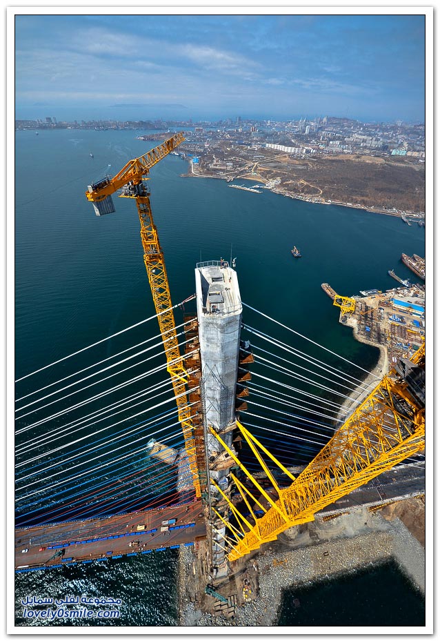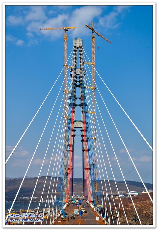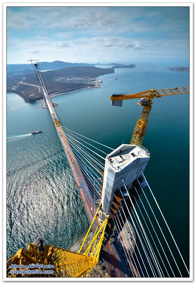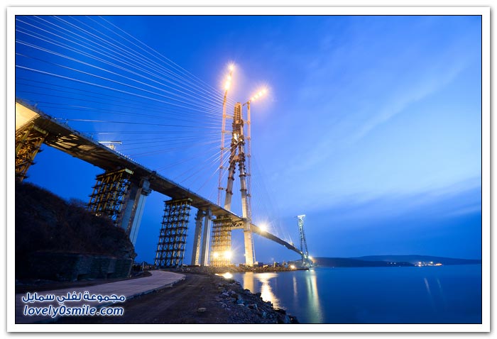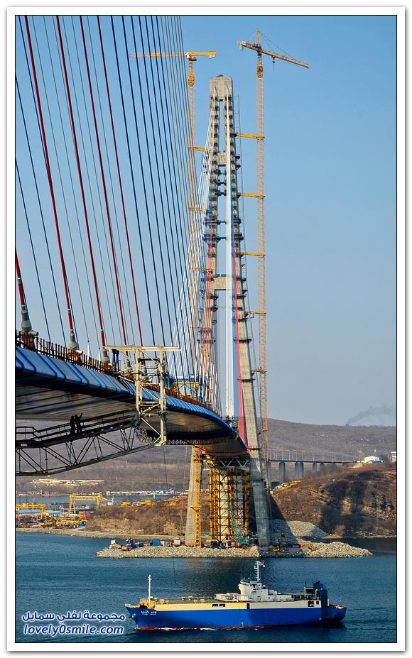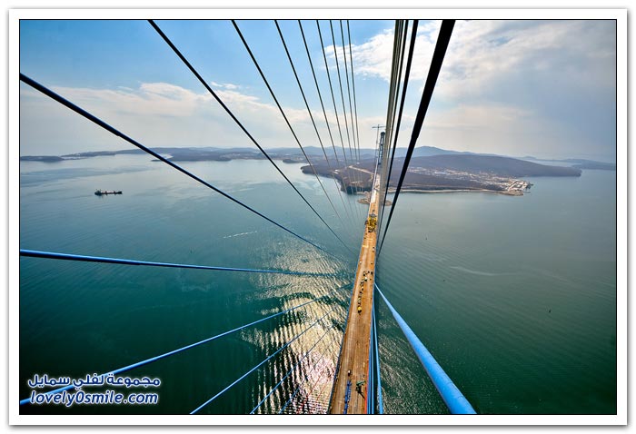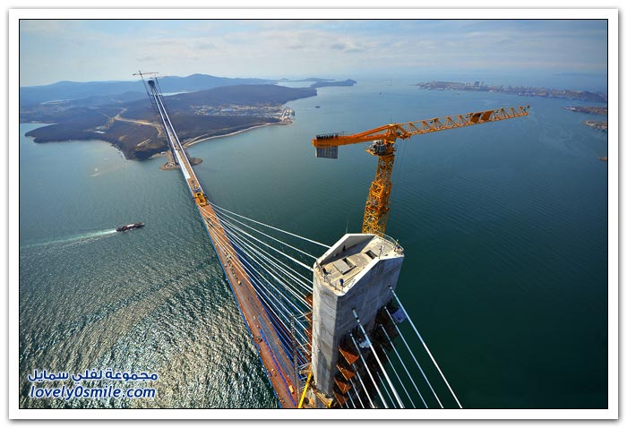 * يتم بناء جسر جزيرة فلاديفوستوك الروسية في مضيق البوسفور في إطار إعداد الجزيرة لقمة الايبك في عام 2012.