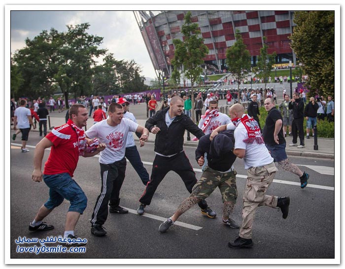 * دماء واشتباكات بالجملة بين جماهير بولندا وروسيا في يورو 2012.