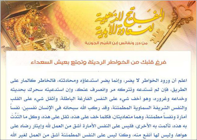 المفاتيح الذهبية للسعادة الأبدية من درر ونفائس ابن القيم الجوزية