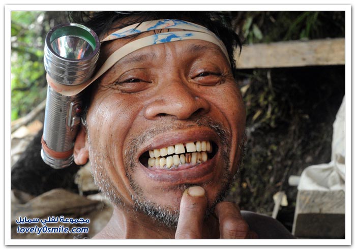 رينالدو اليجادور، مزارع سابق والآن عامل منجم صغير، يظهر سن ذهبي مصنوع من جزيئات الذهب التي جمعها هو وعائلته في موقع التعدين في جبل ديواتا في مينداناو، الفلبين. ويعتقد أن الفلبين تمتلك بعض من أكبر احتياطي المعادن في العالم - تقدر الحكومة أن البلاد لديها ما لا يقل عن 840 مليار دولار أمريكي كذهب، نحاس، نيكل، كروم، منجنيز وخامات الفضة والحديد، ولكن مناجم المعادن غير مستغلة إلى حد كبير، وذلك بسبب قوة تأثير الحركة المناهضة للتعدين التي تقودها الكنيسة الكاثوليكية.