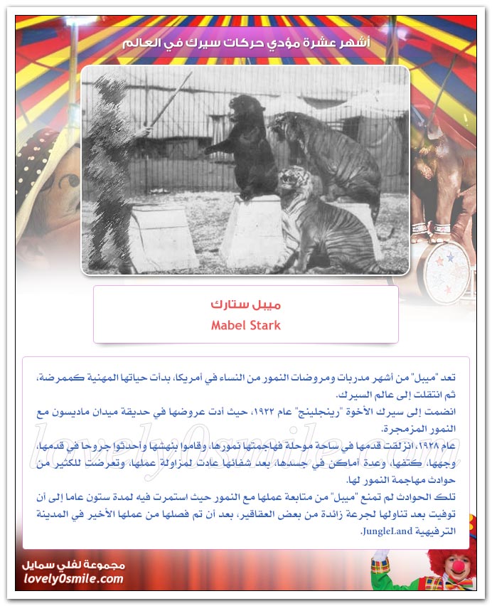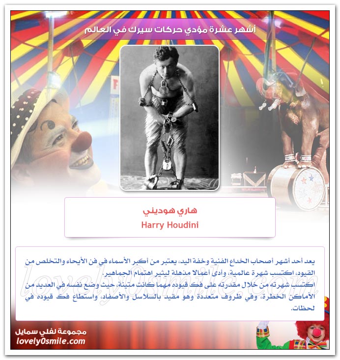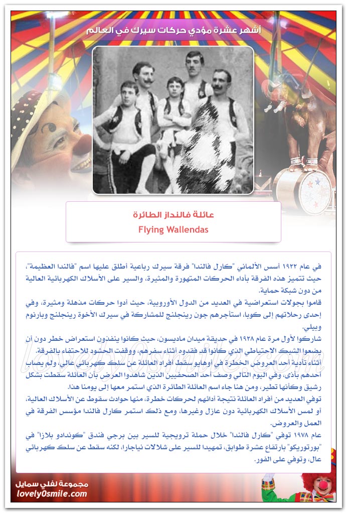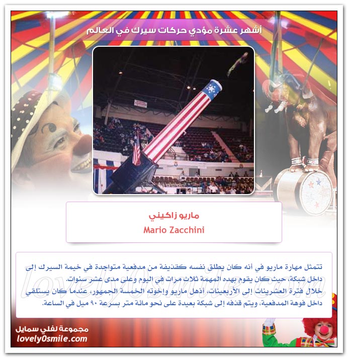- القائمة التالية تضم أشهر عشرة مؤدي حركات سيرك في العالم.