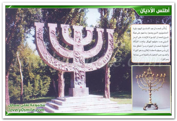- يذكر شمعدان عيد التدشين اليهود بثورة الحشمونيين الذين وضعوا رماحهم على هيئة فروع شمعدان المينوراه للإبقاء على الرمز الديني بعد دخلهم الهيكل. وتتخذ القبالاه الحلولية شمعدان المينوراه رمزاً تنطلق منه إلى صوفية معقدة( فالزيت هو التوارة والضوء هو الشخيناه والفتيلة عي جماعة يسرائيل).