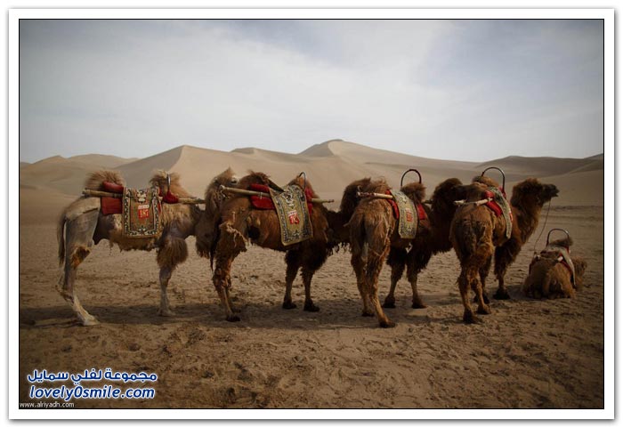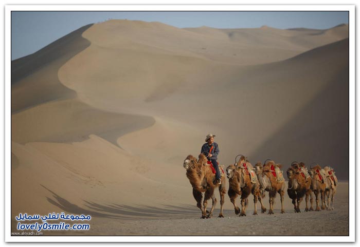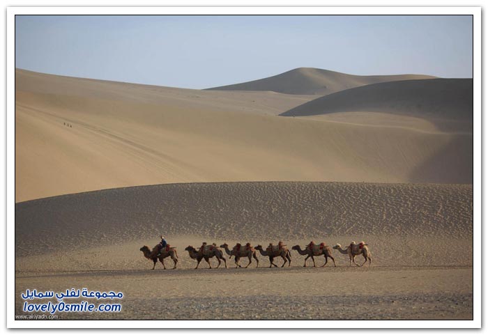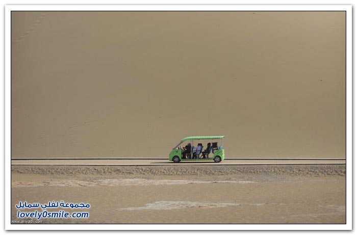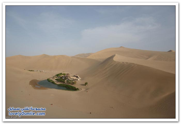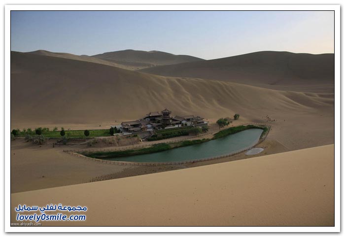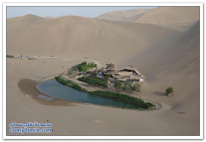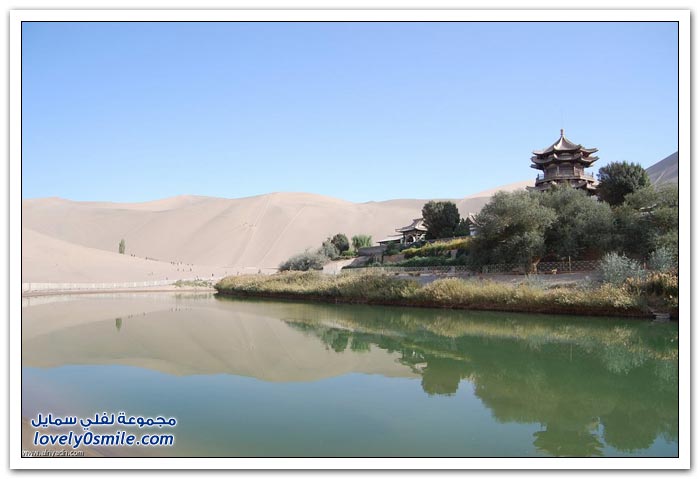 واحة صغيرة وسط الصحراء بمدينة دونهوانغ في مقاطعة قانسو شمال غرب الصين تتكون كليا من المياه العذبة
