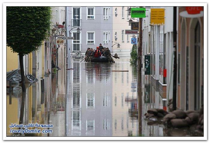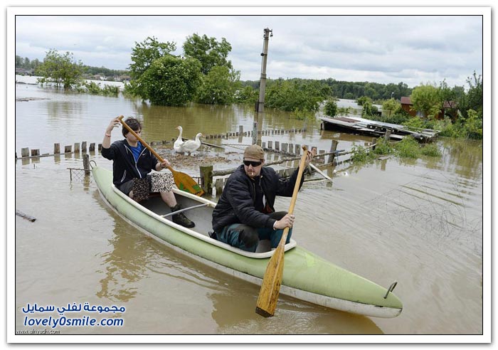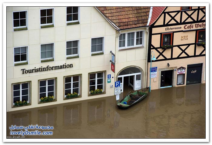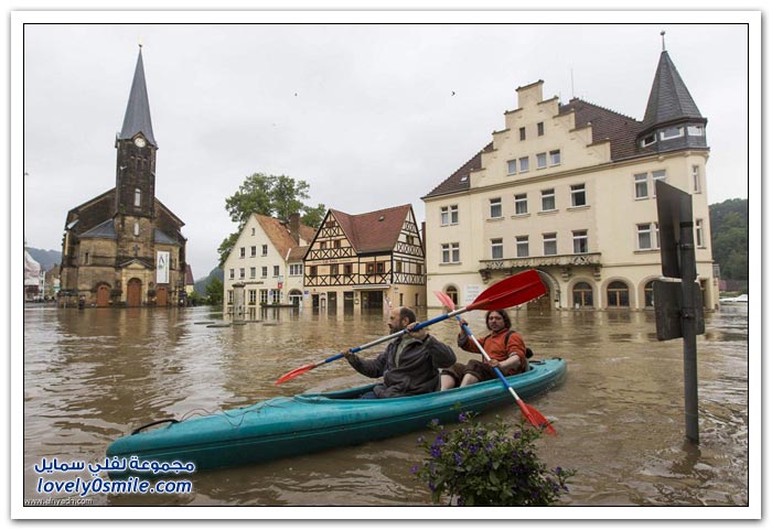 أجبرت الأمطار الغزيرة سكان ولاية سكسونيا شرق ألمانيا على استخدام القوارب كوسيلة وحيدة ممكنة للتنقل بعد ارتفاع منسوب المياه.
