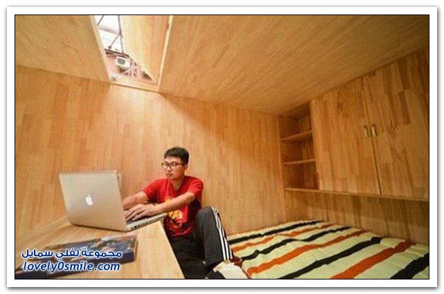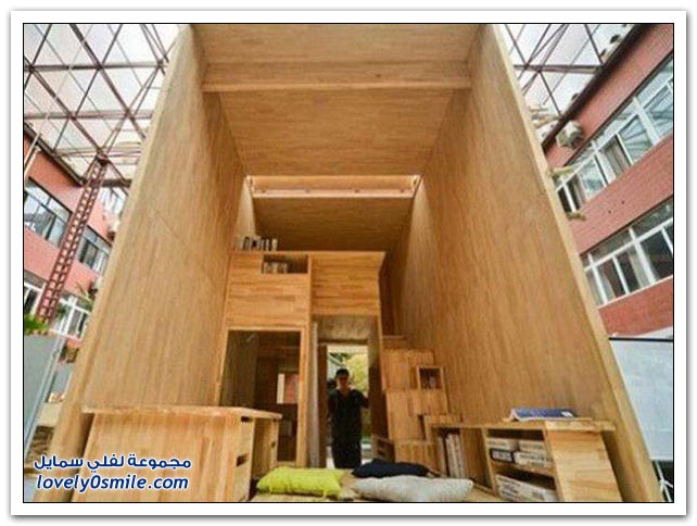 طالب صيني لم يجد منزلا للإيجار فقام ببناء منزل صغير من الخشب بوسط الحي، ويحتوي هذا المنزل الصغير والفريد من نوعه على غرفة نوم وحمام، وطاولة للدراسة، وطاولة لتناول الشاي، بالإضافة إلى خزانة وشرفة.