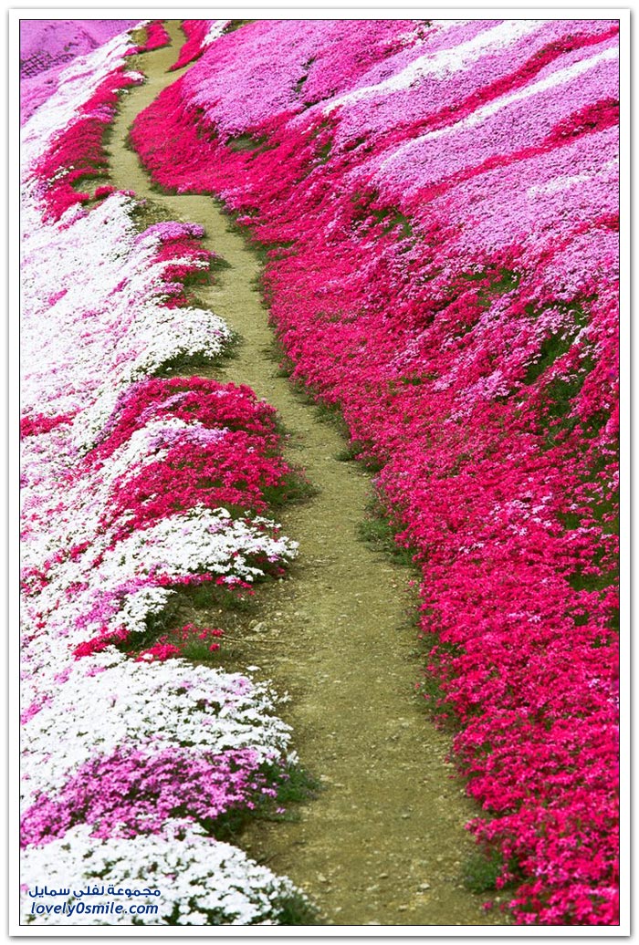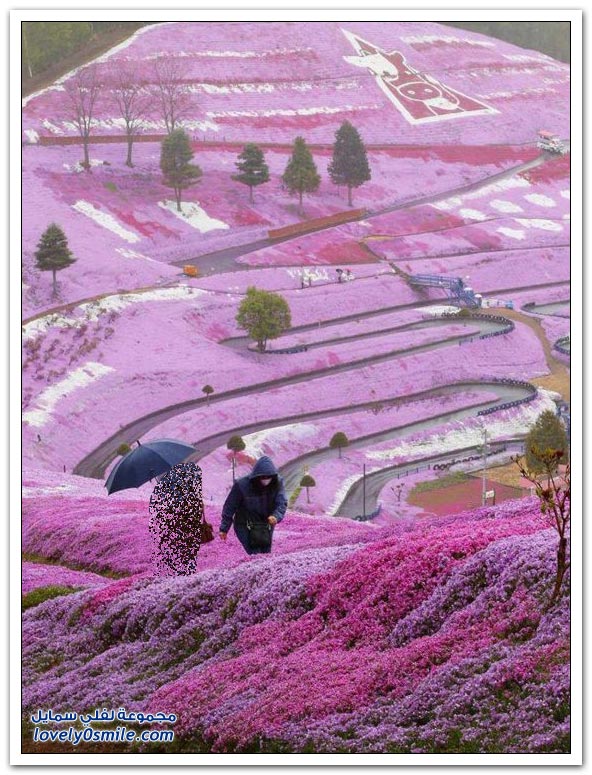 - المسارات المتعرجة توصل الزوار من قاعدة التلال إلى قمتها حيث يمكنهم الاستمتاع بمشهد رائع يشبه وكأنه بحر من الزهور الوردية.