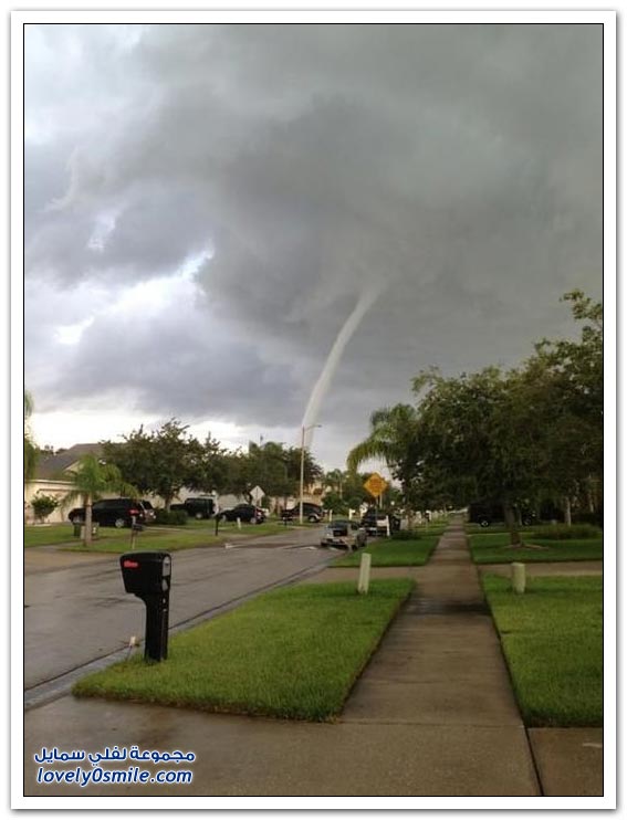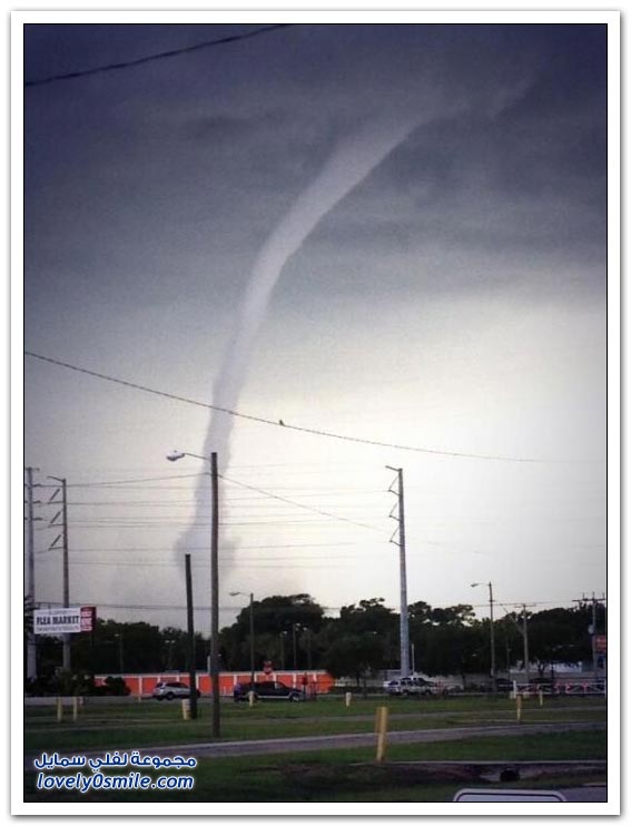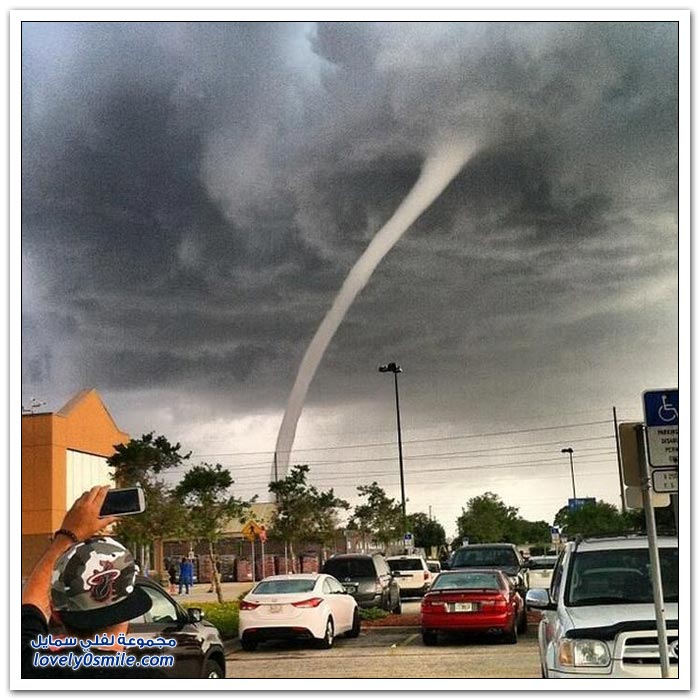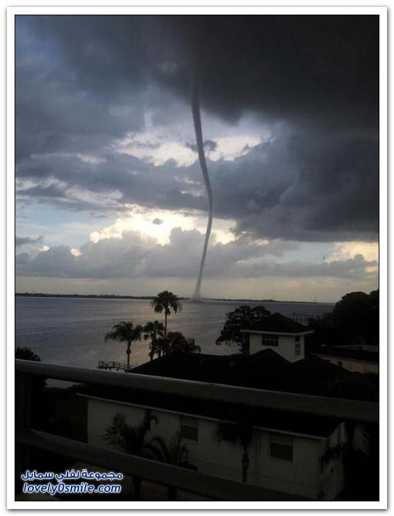 * تمكن أمريكي من تصوير إعصار من مكان قريب جدا في فلوريدا حيث يظهر الإعصار بخرطوم طويل يصل حتى الأرض ..