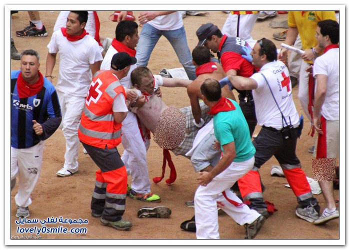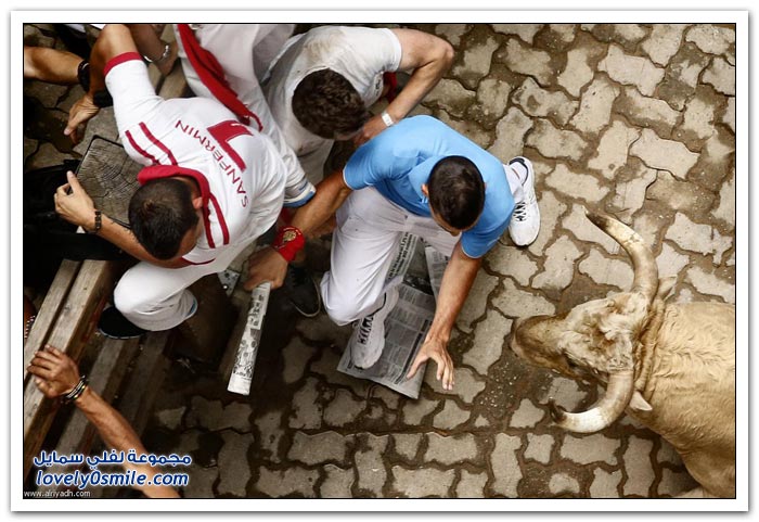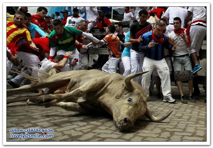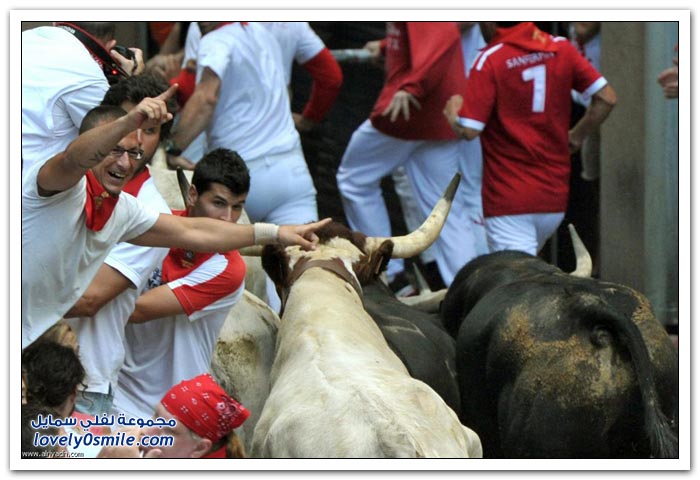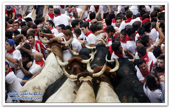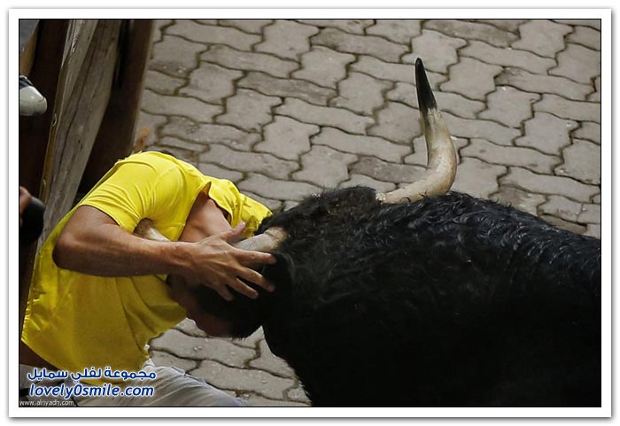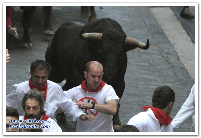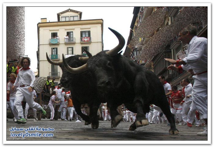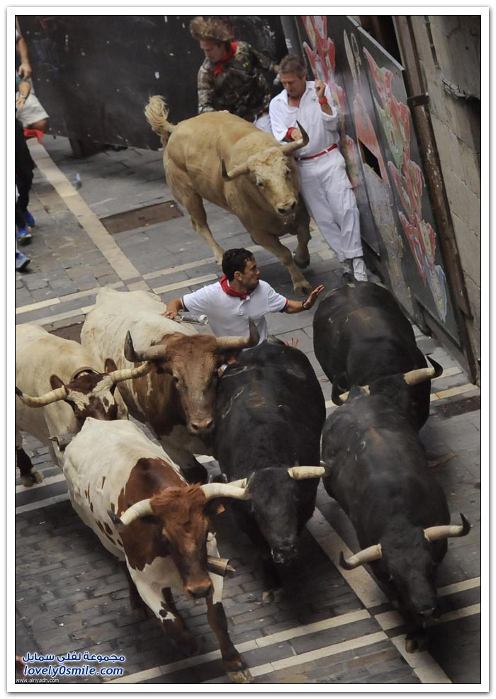 تطارد الثيران عبر شوارع المدينة الضيقة مئات الأشخاص بينهم عدد كبير من السائحين.