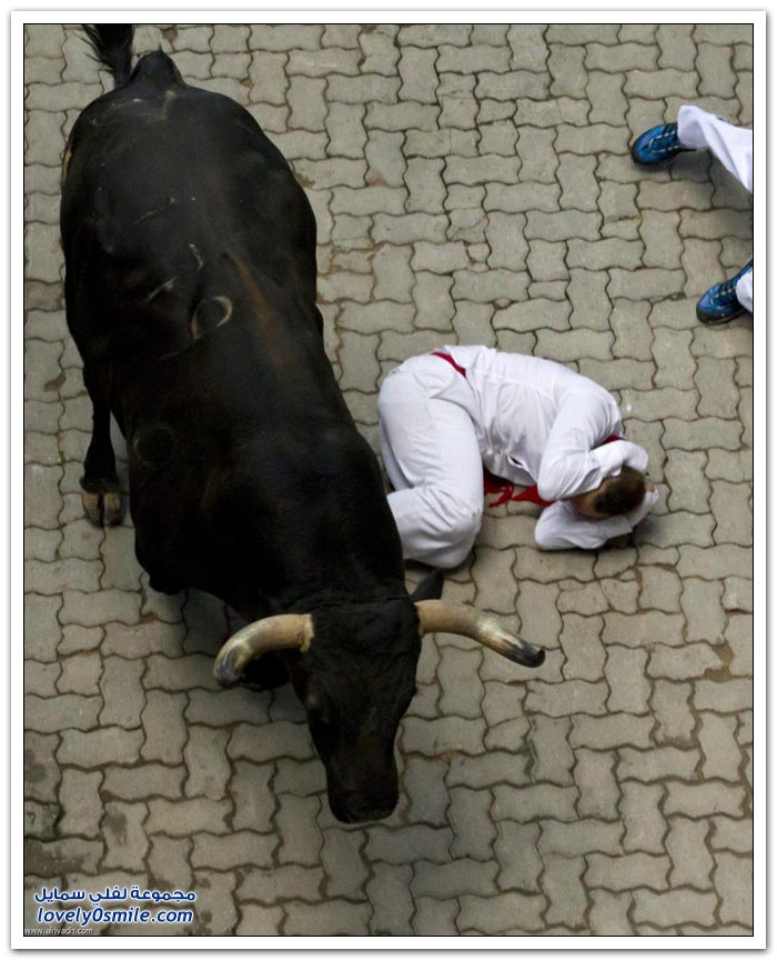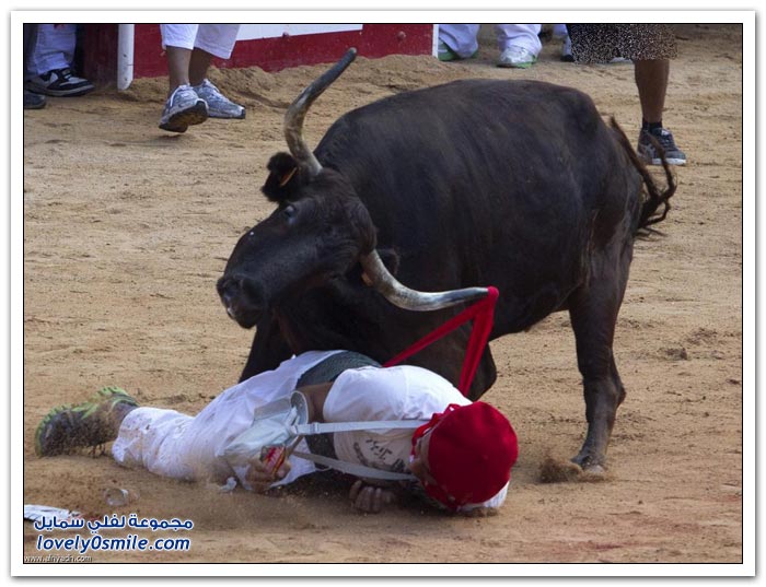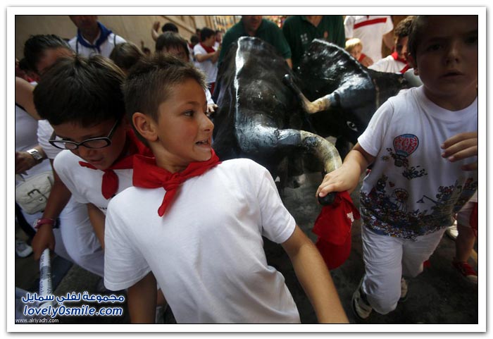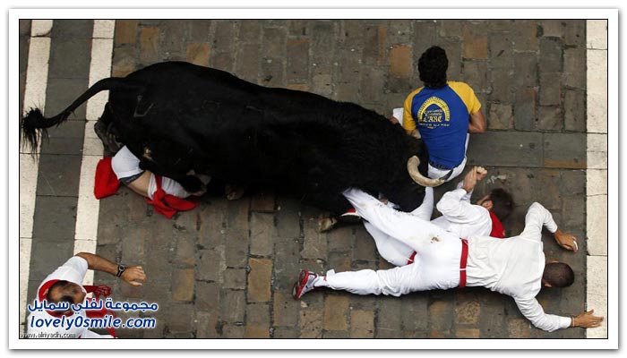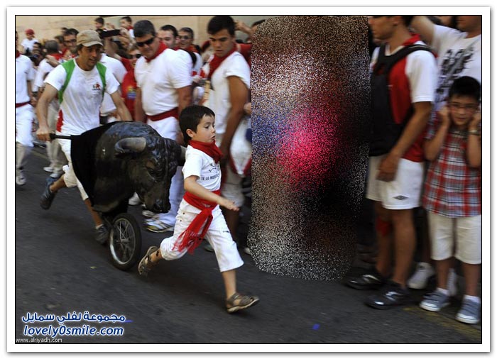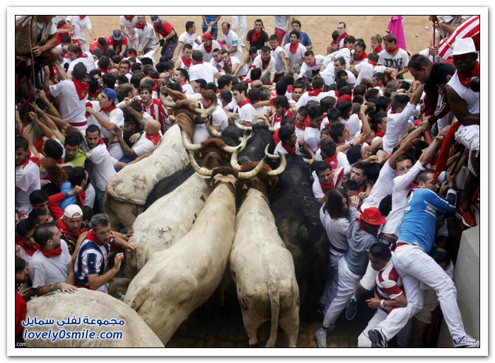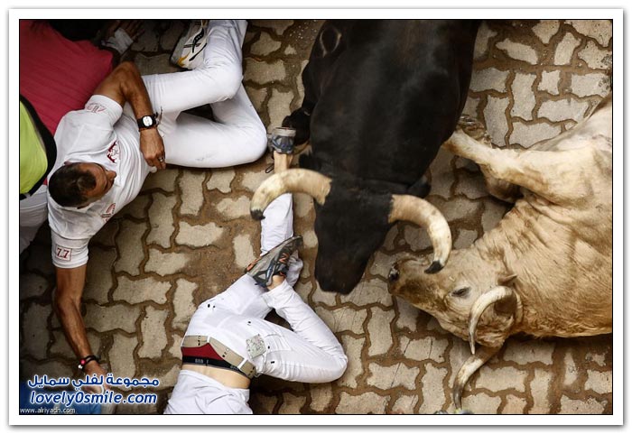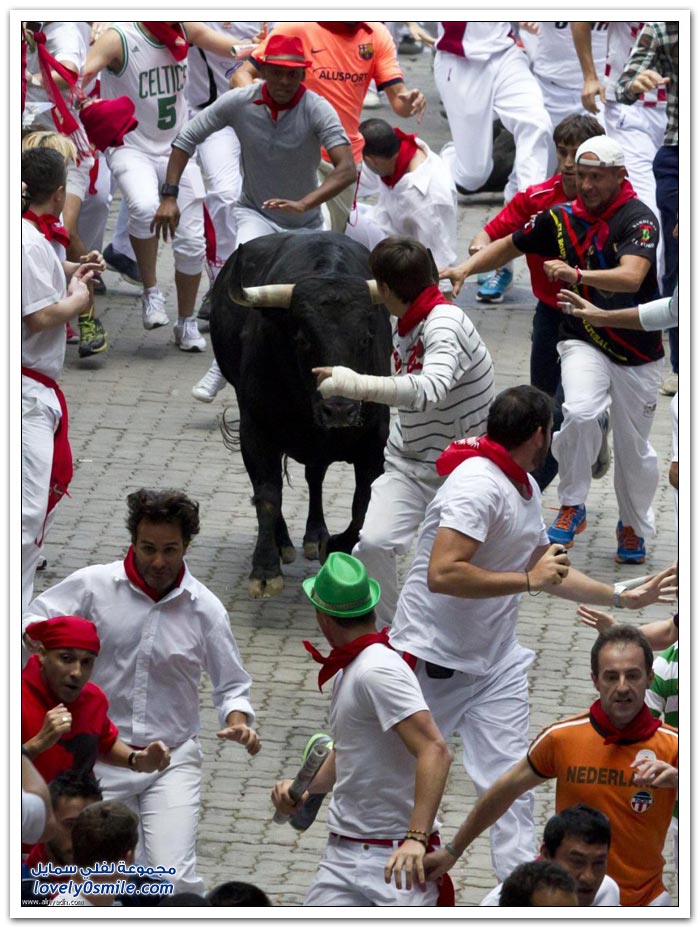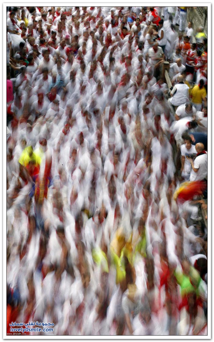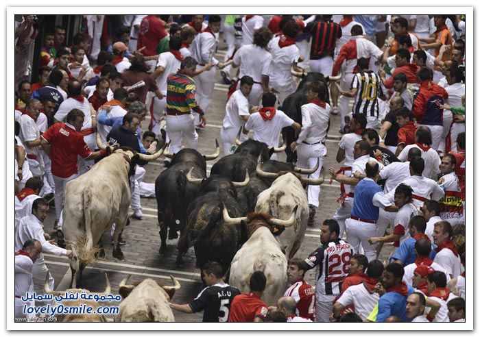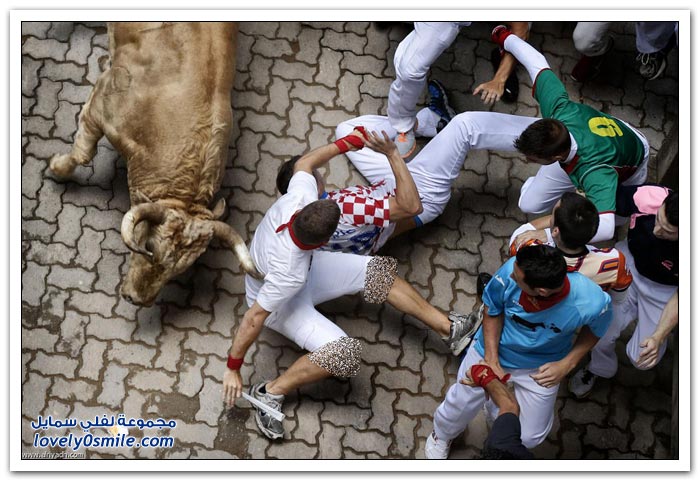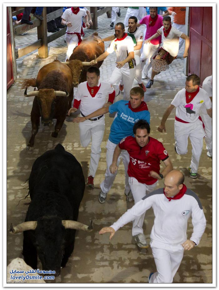 مهرجان سان فيرمن لعدو الثيران بمدينة بامبلونا الإسبانية.