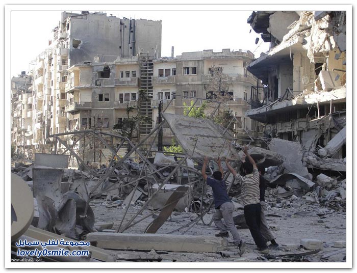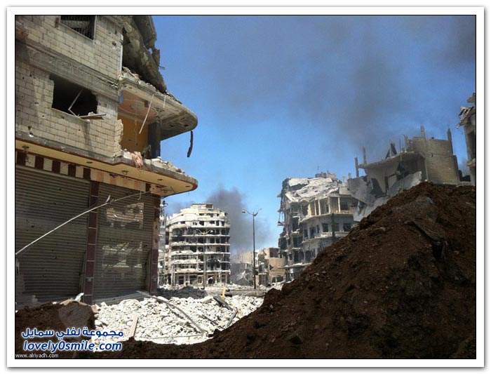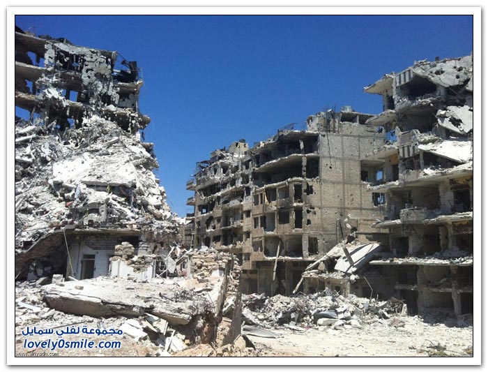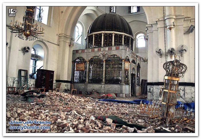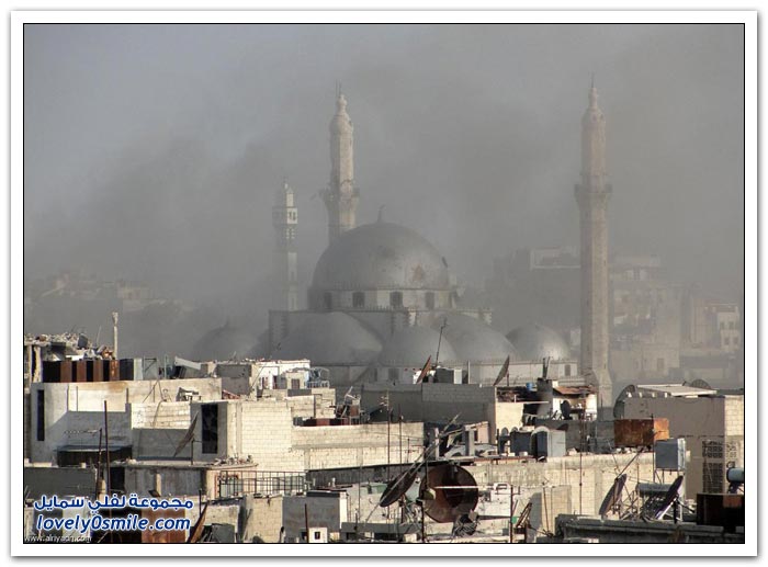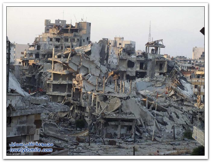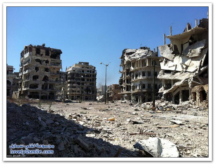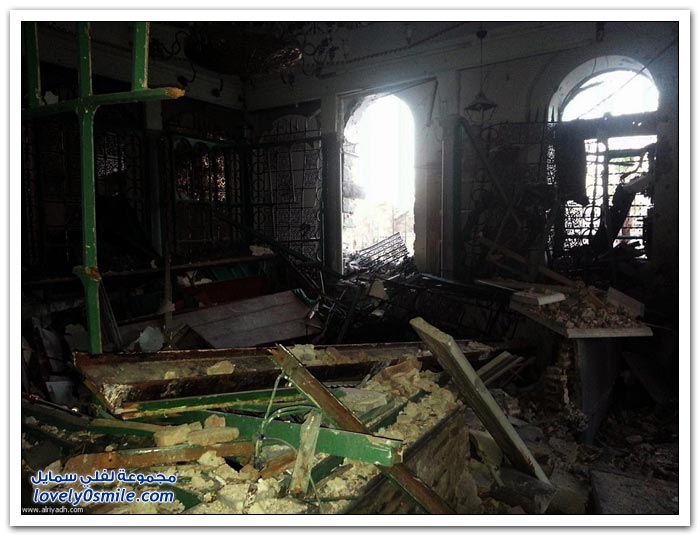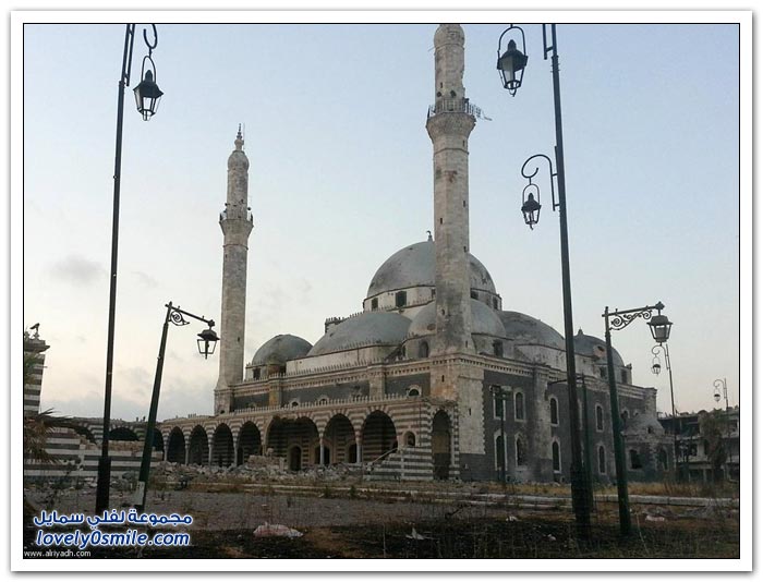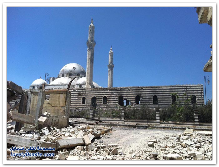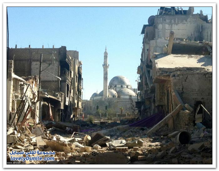 يقف مسجد الصحابي خالد بن الوليد شاهدا على الدمار الذي حل بمدينة حمص جراء القصف الذي يقوم به نظام الأسد.
