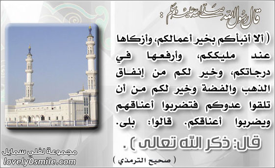 جزاك الله خيرا على هذا النقل الطيب لأحاديث الرسول صلى الله عليه و سلم. فنحن بأمس الحاجة لتعرفها و استخدامها في حياتنا اليومية.