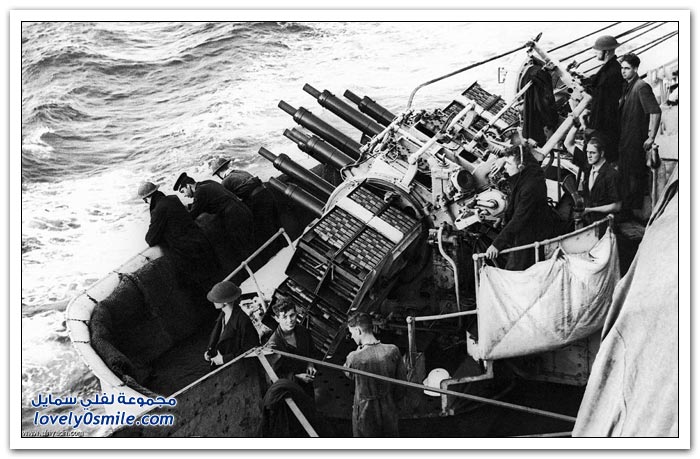 سفينة حربية بريطانية تقصف ميناء البردية الليبي في 21 يونيو 1941.