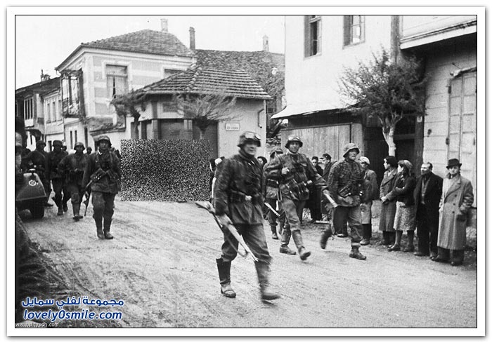 فرقة من الجنود الألمان يعبرون قرية يونانية محتله في مايو 1941.