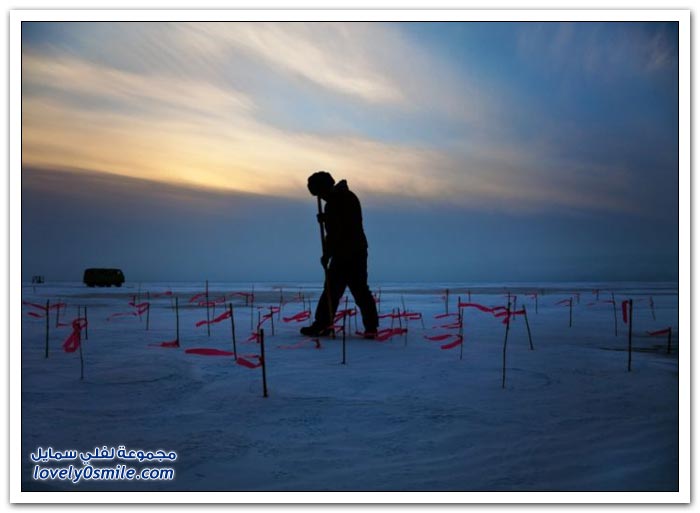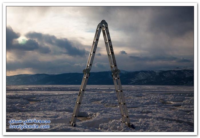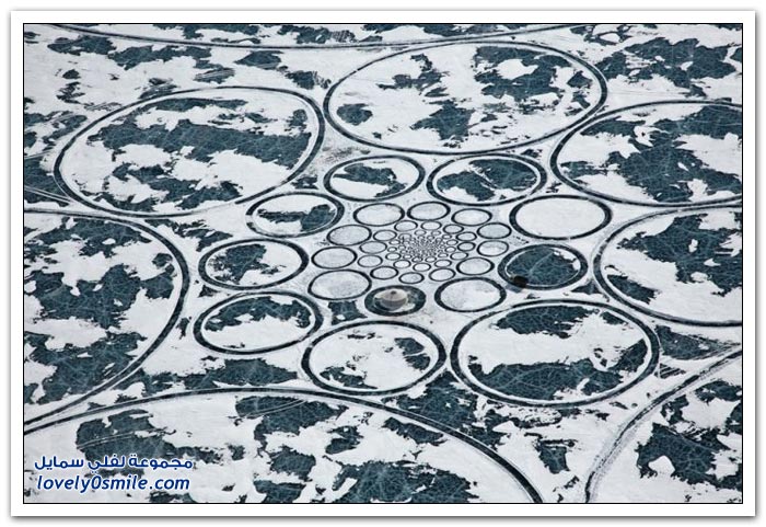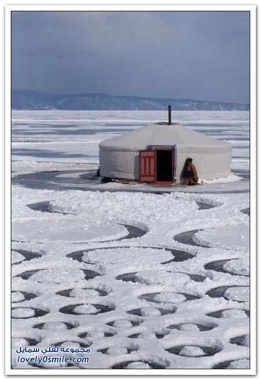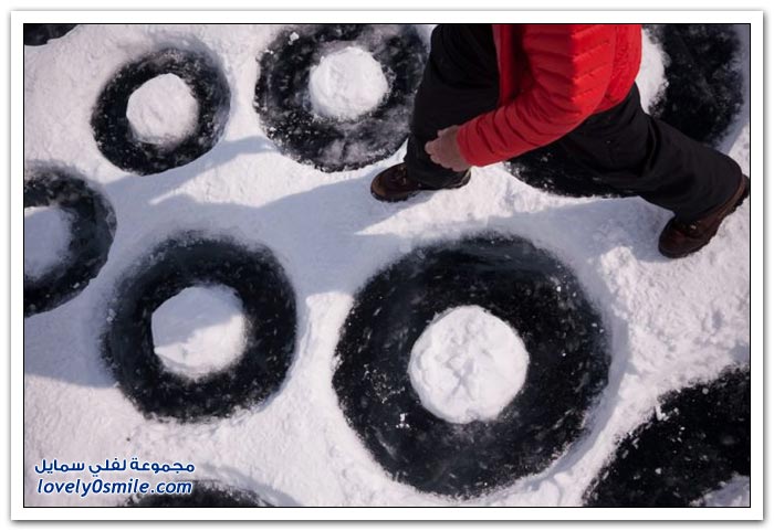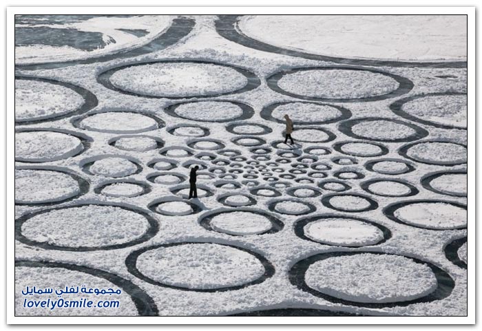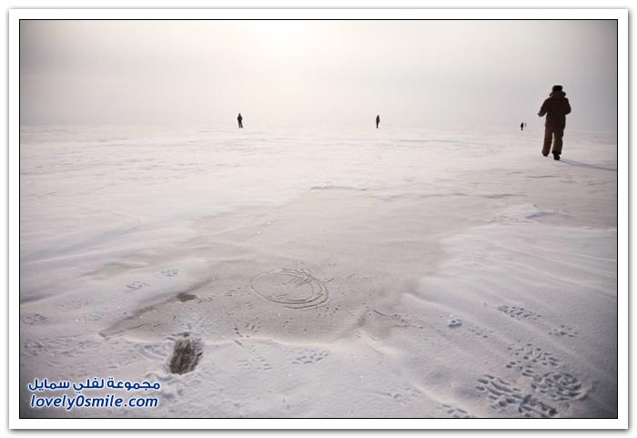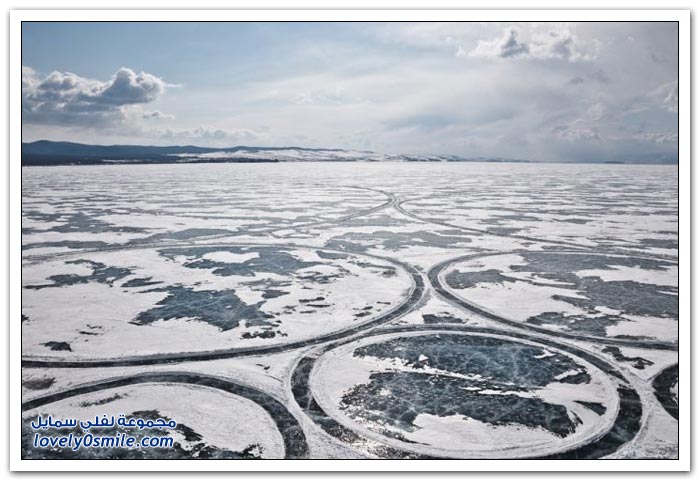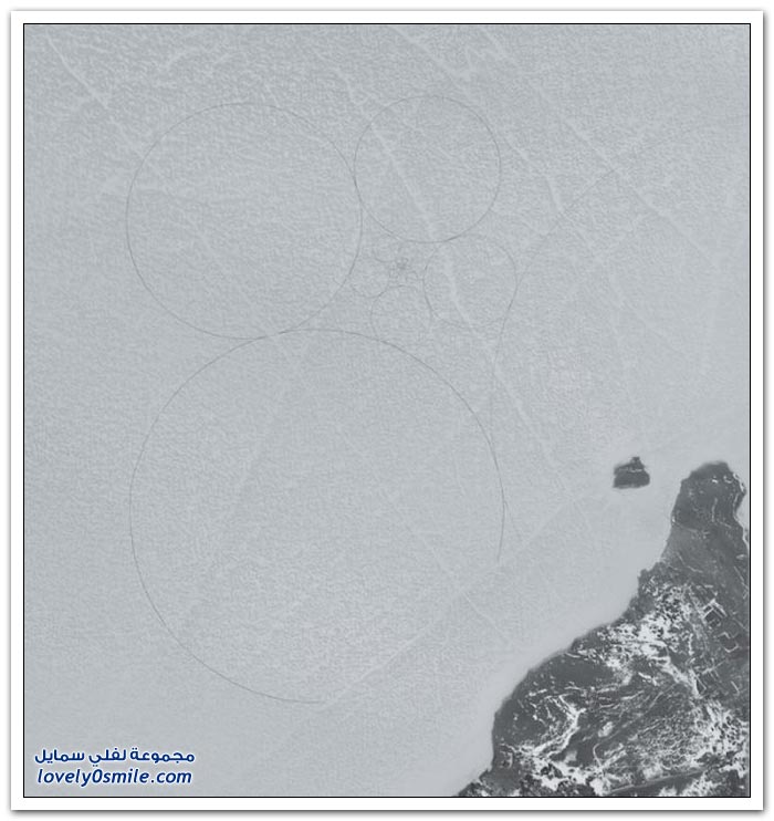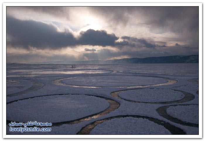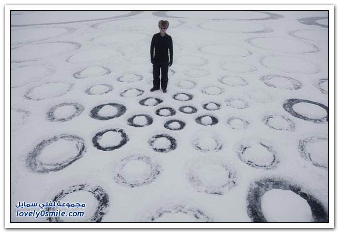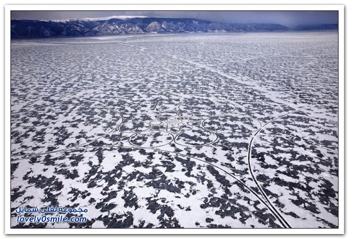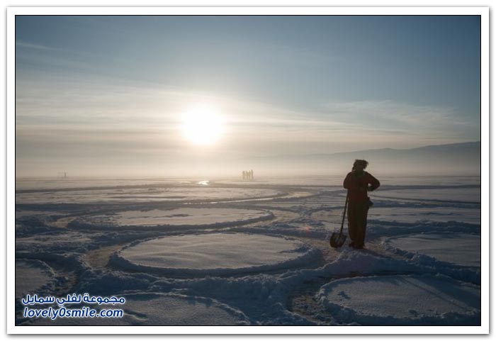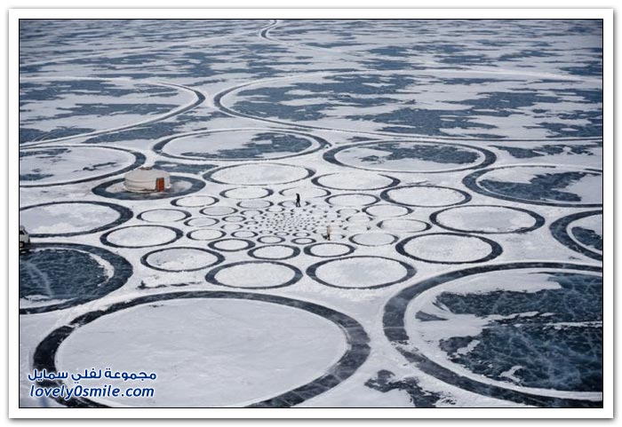 - الفنان جيم Denevan تمكن من عمل دوائر ضخمة على بحيرة متجمدة في سيبيريا من بايكال.