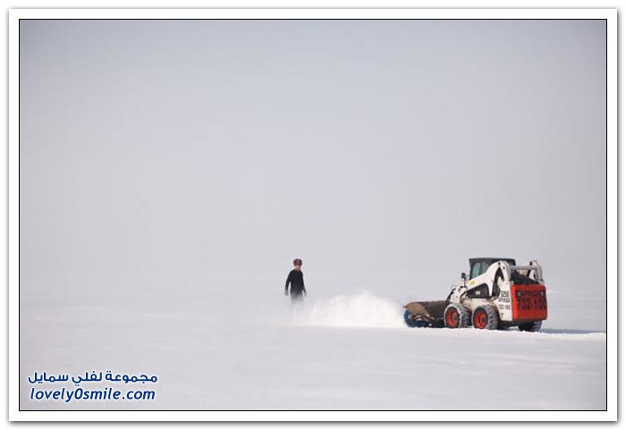 - ولجعل أنماط بهذا الشكل على الجليد كان بحاجة إلى مكنسة وفريق كامل من المساعدين. الجزء الصعب المدهش هو أن الدوائر فنية وتمتد على مساحة تسعة أميال مربعة.