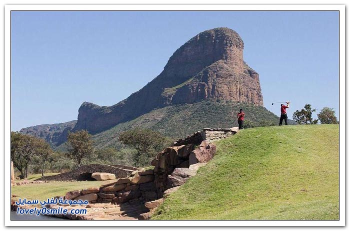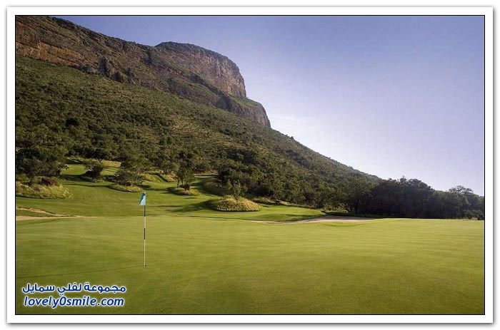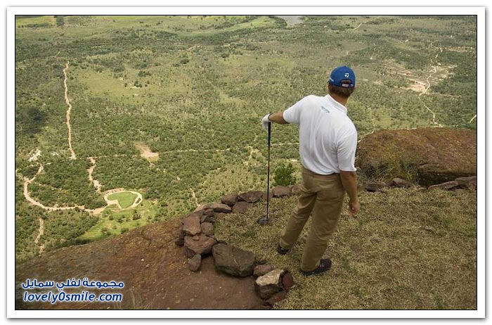 يقع أغرب ملعب غولف بالعالم على ارتفاع 365 متر موجود على جبل Hanglip Mountain بجنوب أفريقيا وتعتبر أعلى منطقة لضرب كرة الغولف إلى حفر رقم 19 موجودة في الأسفل ، وحتى تصل إلى هذا المكان المرتفع يجب أن تركب طائرة هيلوكوبتر ، والمدة الزمنية لنزول الكرة للأسف 30 ثانية فقط.