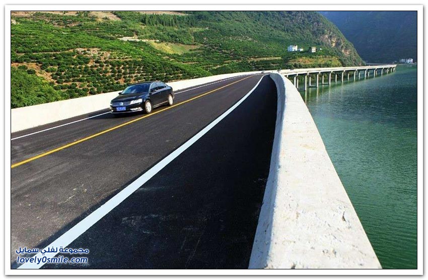 - حيث تم بناء أربعة كيلومترات من الطريق كجسر فوق النهر من أجل حماية الغابات، ويعتبر هذا أول طريق بيئي مائي في الصين.
