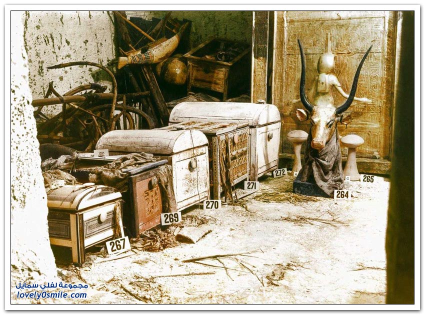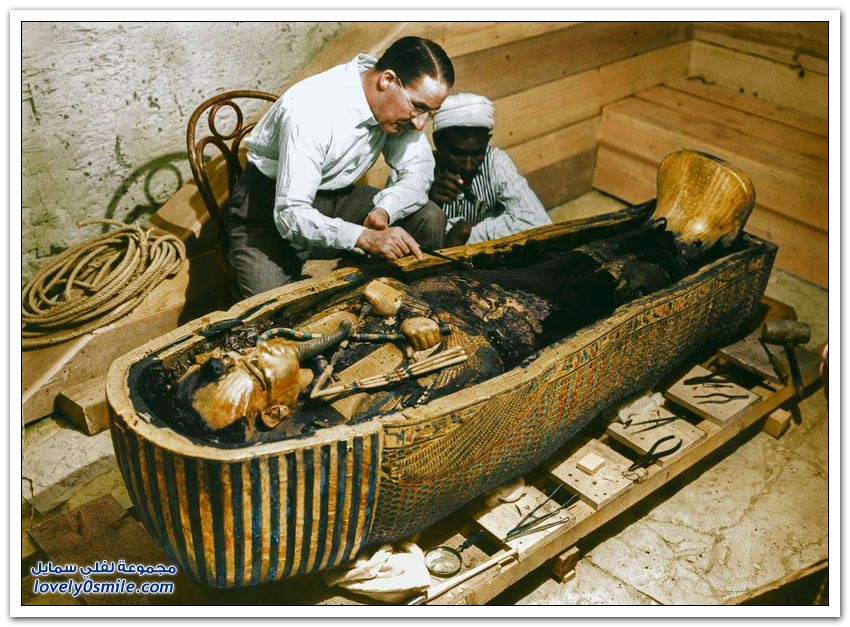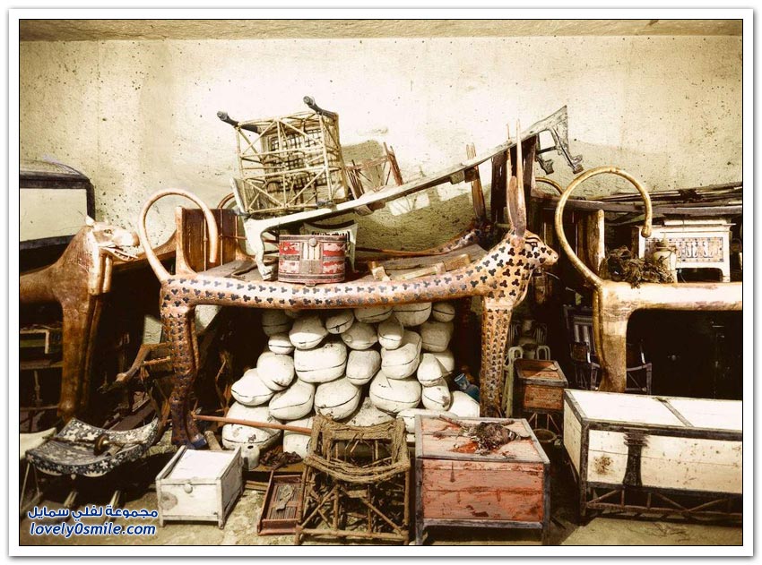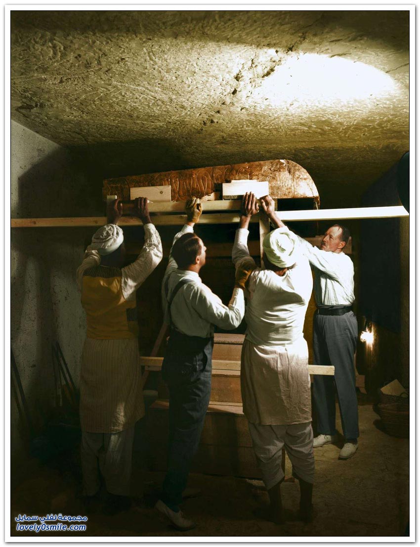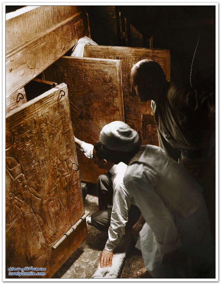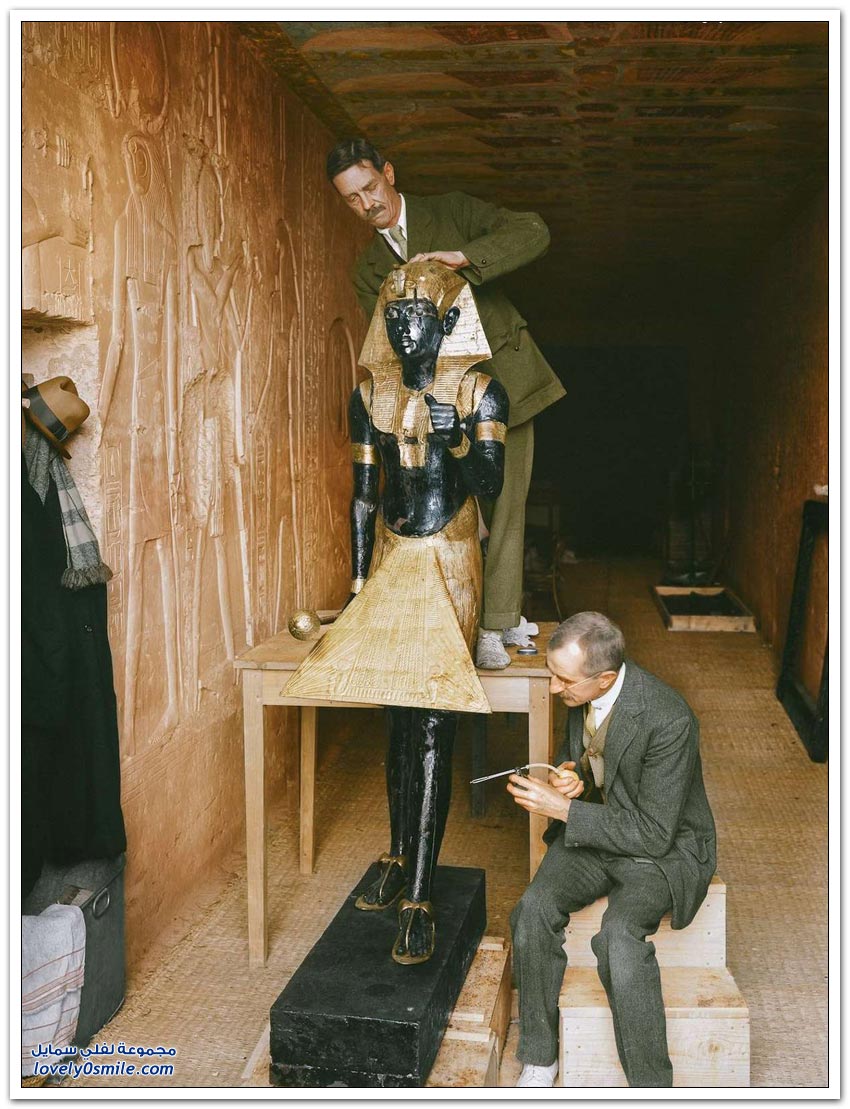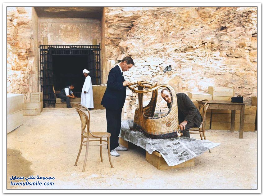 - وبحسب الصحيفة، الصور تم التقاطها بواسطة المصور البريطاني هاري بورتون أثناء عملية الحفر في عام 1922، وتم العمل على تلك الصور بتقنيات متطورة من أجل تلوينها لتكون أشبه بما كانت عليه في الماضي، في محاولة لإعطاء العالم فرصة للتعرف على الوضع في المقبرة بالشكل الطبيعي، بدون الأبيض والأسود الذي عادة ما يخفي التفاصيل المبهرة التي صنعها القدماء المصريون.