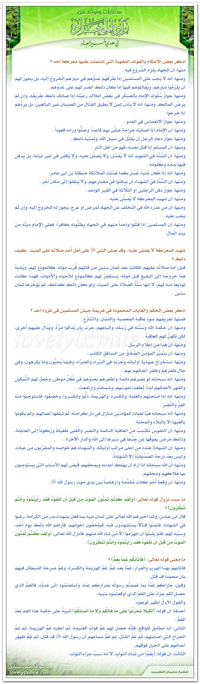 مختارات وفوائد من زاد المعاد في هدي خير العباد