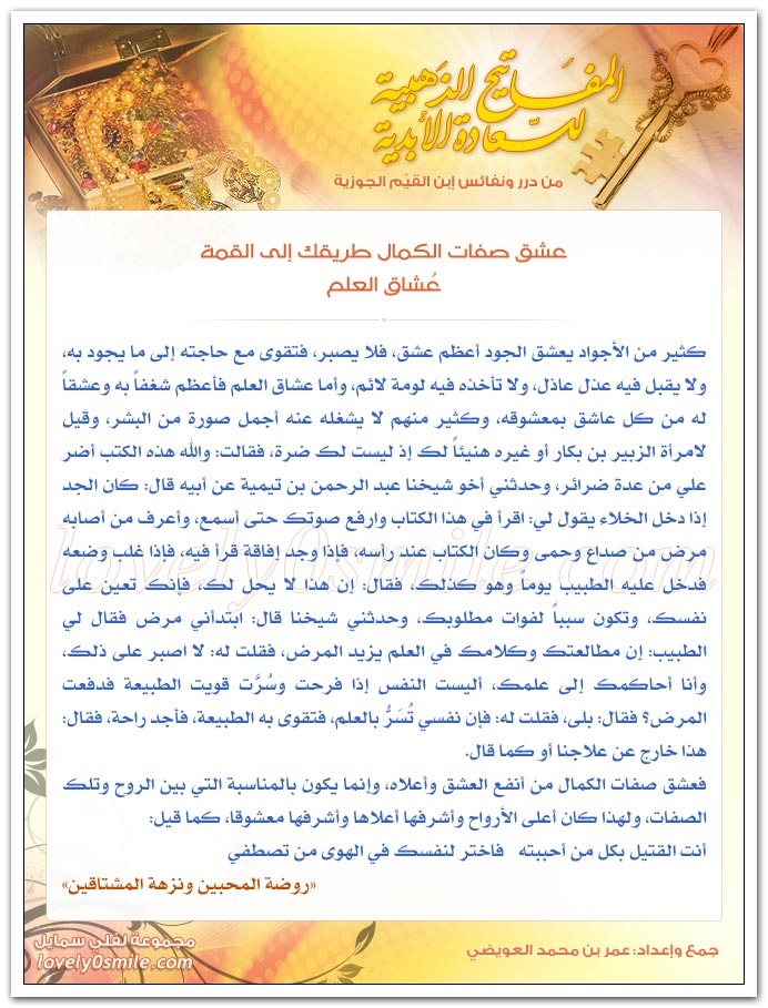 المفاتيح الذهبية للسعادة الأبدية من درر ونفائس ابن القيم الجوزية