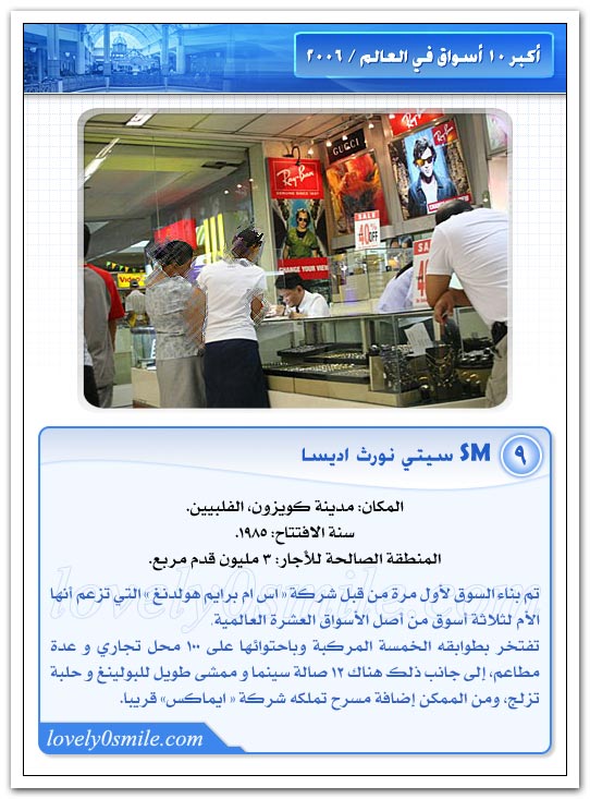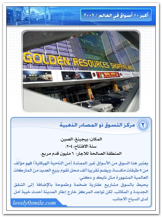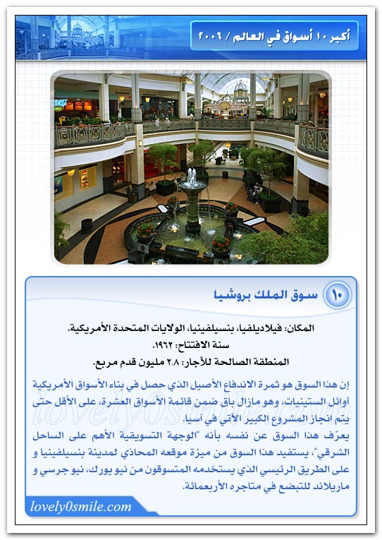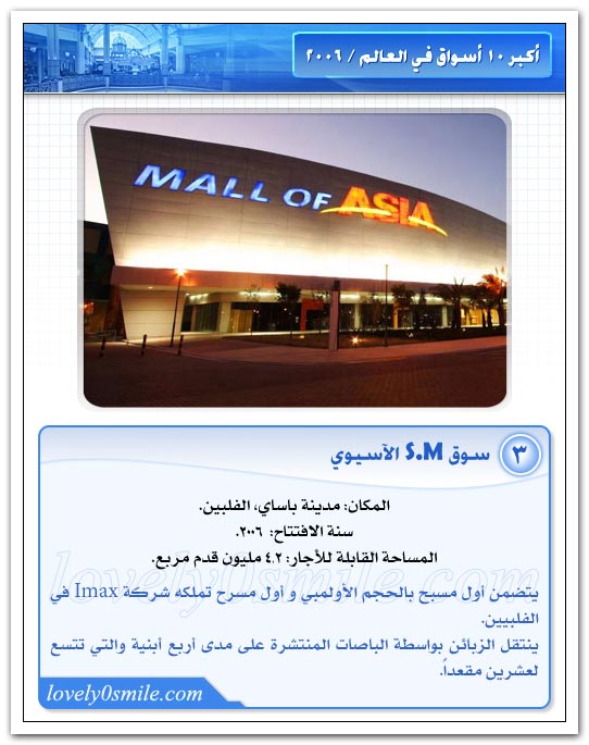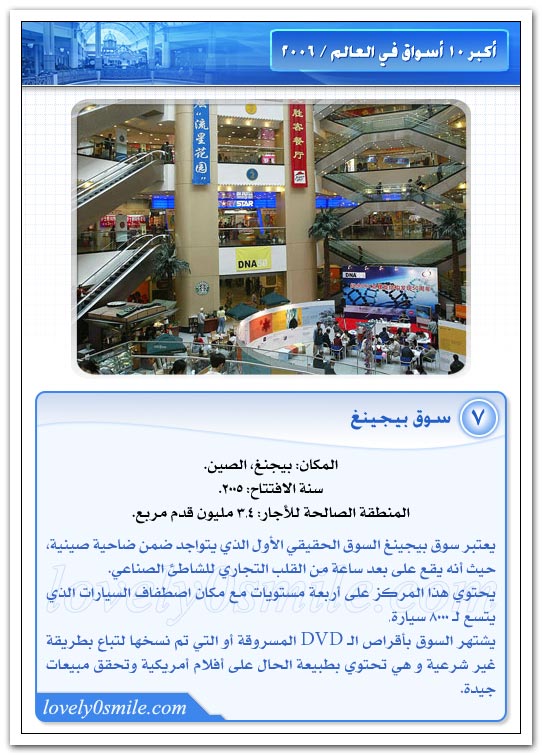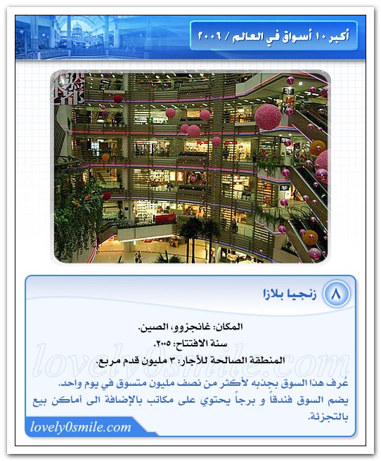 - و تعتبر آسيا موطنا لثمان من أصل الأسواق العشرة, ستة من هذه الأسواق بنيت آخر ثلاث سنوات.