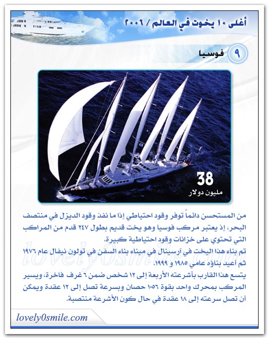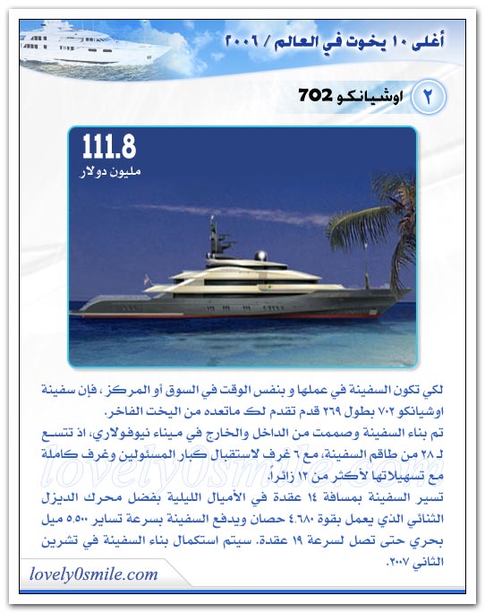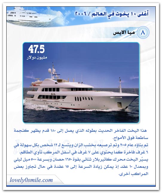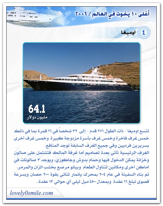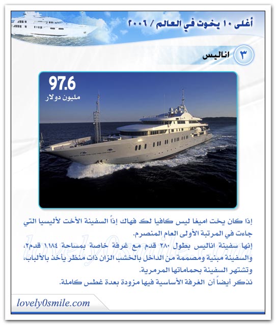 مع جمال وروعة هذه اليخوت فهذا ما اعد العباد للعباد فمابالكم بما أعد رب العباد سبحانه وتعالي للعباد في جنة الخلد؟؟!!!!!