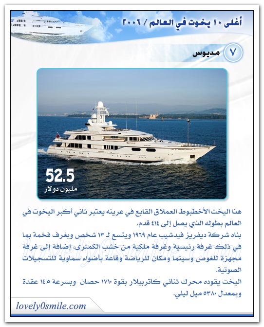 يخوت فخمه ورائعه من حيث التصميم الهندسي الرائع والمتقن جدا شكرا على الصور اخي الكريم ..