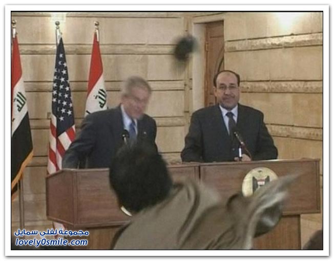 يسلم يمينك يا الزيدي والله انك رجال من ظهر رجااال وبوووووش الحقــــــــير يستاااهل اكثر من كذااا بس خساااره العرب ما بقى عندهم غيره واااااااااااخ اااااااااخ بس لو كانت رصاصه بدل الحذاااء بوسط قلبه هو والمالكي معاه ..