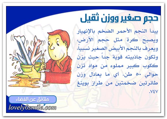 السلام عليكم أولاً أود شكركم على هذه المعلومات الرائعة...... وثانيا أعتقد أن هناك خطأ في الصورة ذات العنوان "حجم صغير ووزن كبير" وذلك في السطر الخامس حيث كتب "حيث يزن كوكب كبير" واعتقد أن المقصود "حيث يزن كوب كبير" يرجى التنبه. مع الشكر.