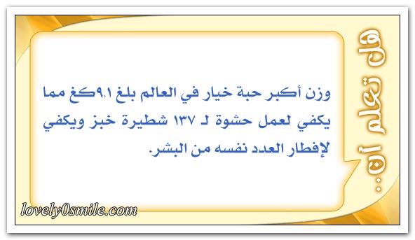 الموضوعات رائعة جدا ومفيدة جدا، بارك الله فيكم وإلى مزيد من التقدم والإزدهار، ولقد احسست بعد قراءة هل تعلم أن خير الكلام ما قل ودل.