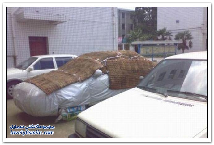 من زيادة الحرص شوف وشلون غطى السيارة
