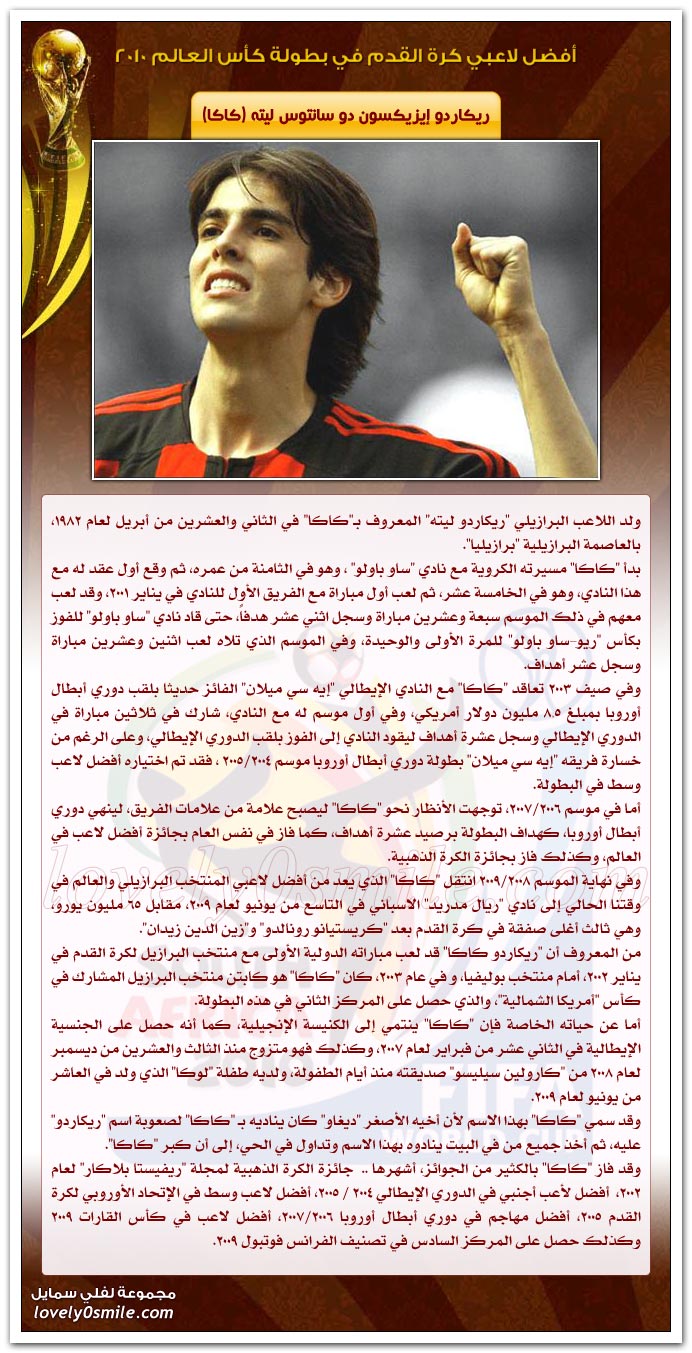 - ومنذ فترة بسيطة ، انتهت بطولة كأس العالم 2010 ، التي أقيمت بدولة "جنوب أفريقيا" ، وتألق مجموعة كبيرة من اللاعبين خلال أكبر حدث رياضي علي سطح هذا الكوكب .. لذلك دعونا نتحدث عن أبرز عشرة لاعبين شاركوا في هذا الحدث الرياضي الكبير ...