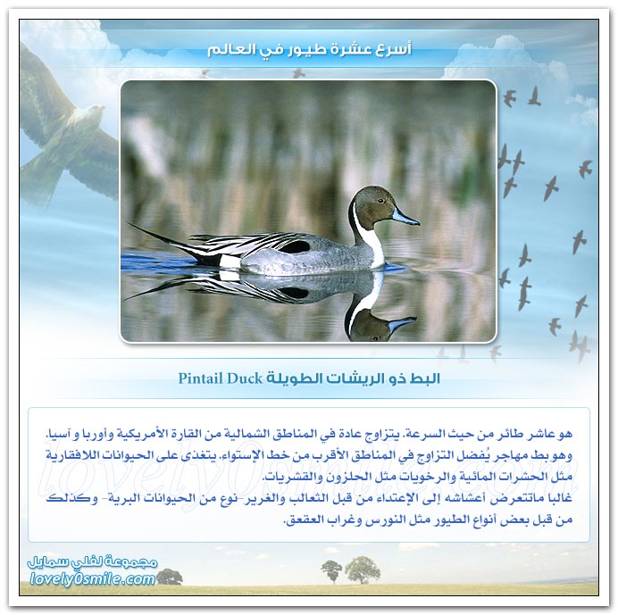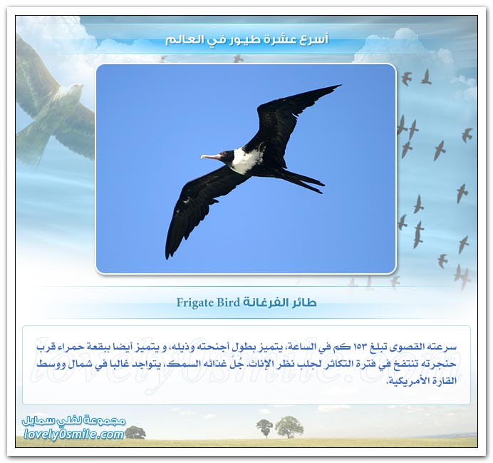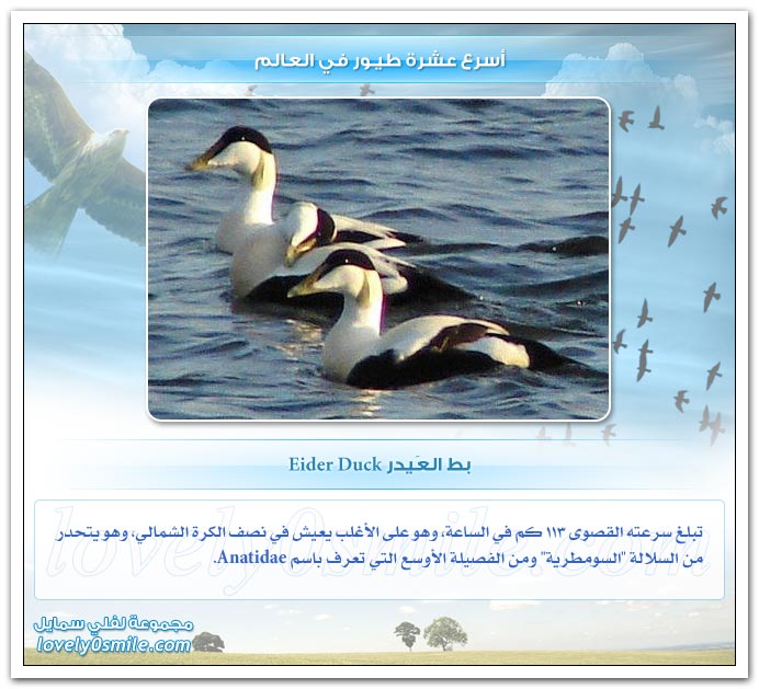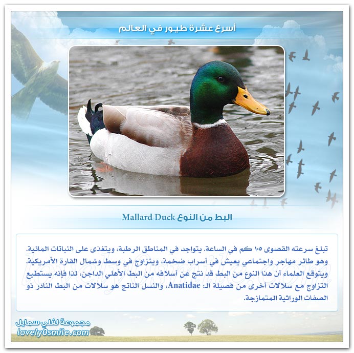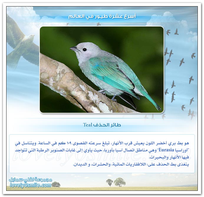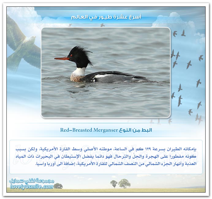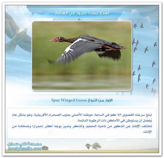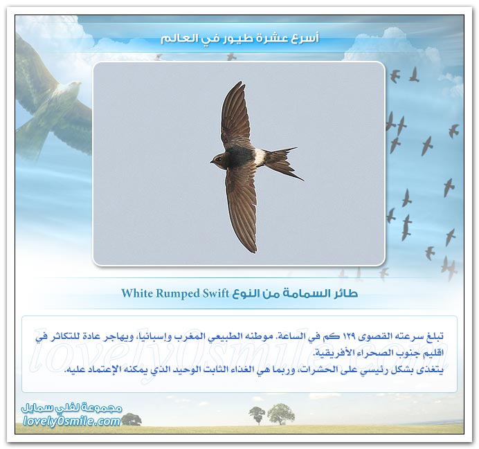 - من على هذه الصفحات سنحاول تقديم أسرع عشرة طيور في العالم، وعلى الرغم من أن التحديد القطعي هو أمر خلافي وأمر صعب ويتطلب بحث وتدقيق طويل، إلا أنه بإمكاننا أن نقول أن: