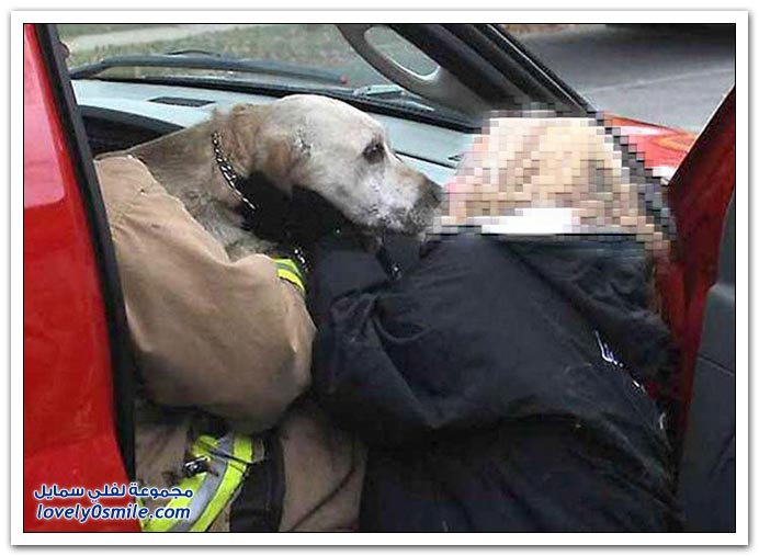 قبلة الحياة يقوم بها رجل إطفاء لكلب