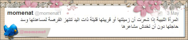 مقتبسة من حساب مؤمنات في تويتر وهو حساب تغريداته عن كل ما يخص المرأة المؤمنة \ ينصح به