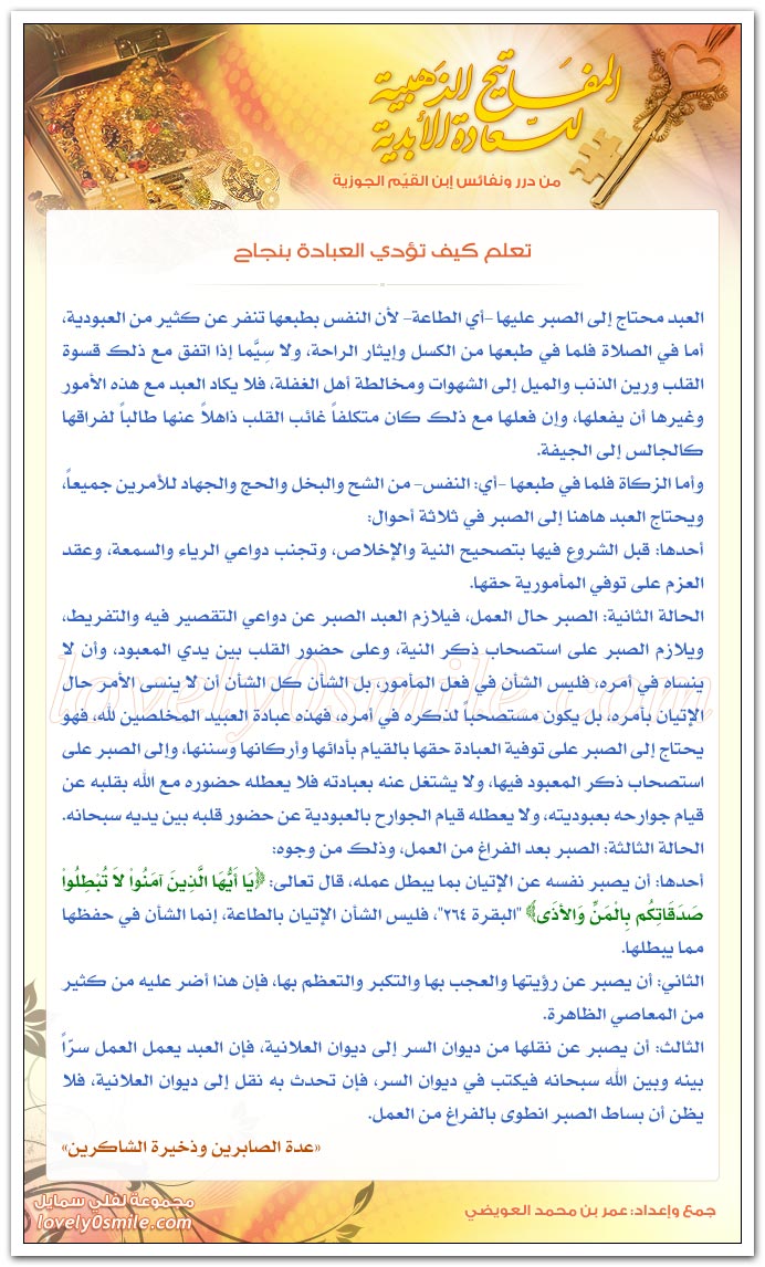 المفاتيح الذهبية للسعادة الأبدية من درر ونفائس ابن القيم الجوزية