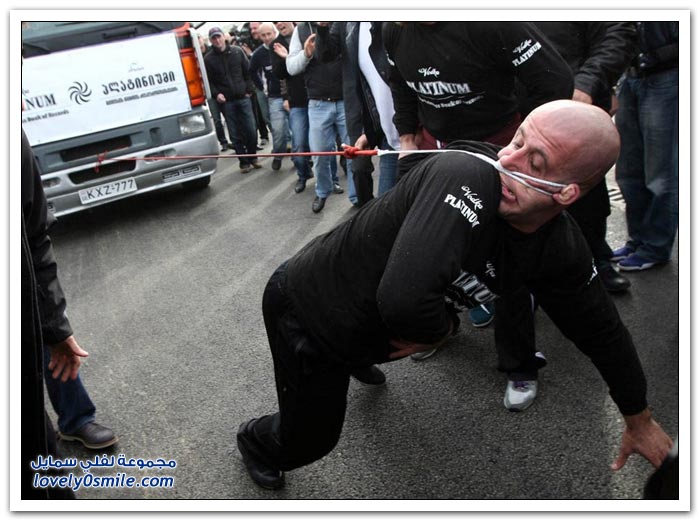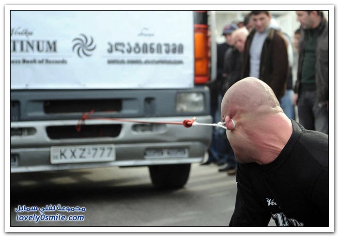 * اشع باتارا رجل عمره 32 عاما من جورجيا بطل في المصارعة الرومانية, استطاع أن يدخل موسوعة غينس للأرقام القياسية بتحطيم رقم قياسي جديد في سحب شاحنة وزنها 8,28 طن والسير بها لمسافة 21,5 متر, وكل ذلك كان بجرها بأذنه.