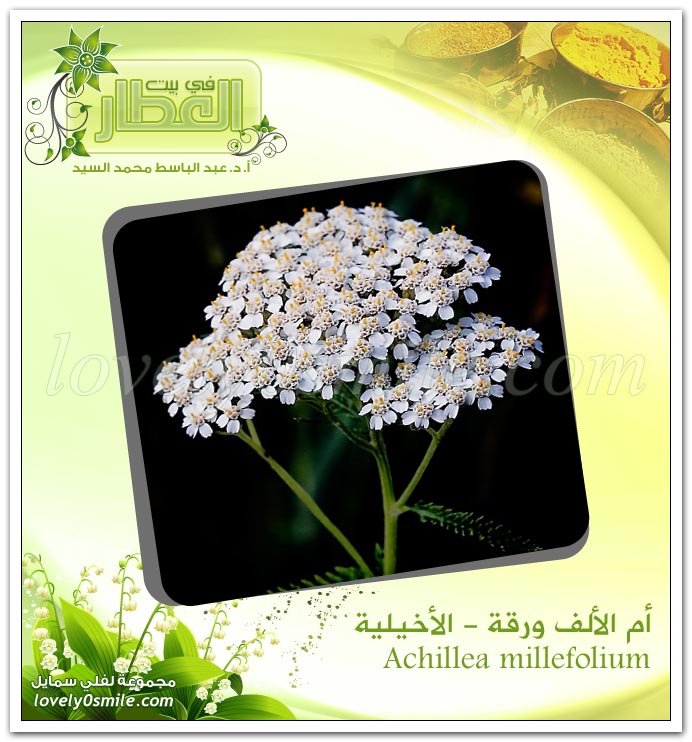 * الأخليلة: ومن أسمائها الكثيرة أيضاً: الأخيليا، أكيليا، ذات الألف ورقة، حشيشة النجارين، العشبة الحربية، مريافلن، حشيشة الجنود، أهداب فينوس.