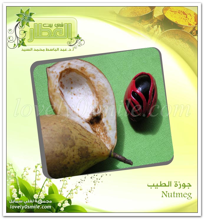 * الاسم النباتي لجوزة الطيب (Myristica fragrans)، وجوزة الطيب: هي النواة الجافة لشجرة دائمة الخضرة ولها شذا قوي ومذاق لاذع.