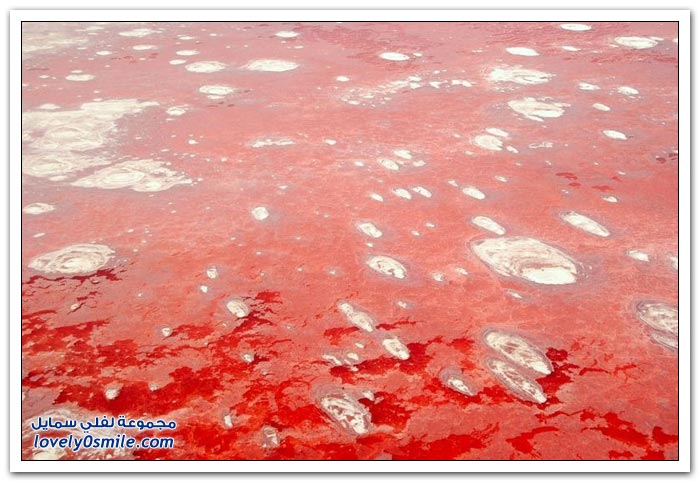 - تتميز مياه البحيرة باللون الأحمر الذي تنتجه أنواع من الطحالب، كذلك تتميز مياه البحيرة بارتفاع نسبه كربونات الكالسيوم بها وكذلك العيون الحارة المتدفقة، والتي تؤدي إلى ارتفاع درجة حرارة ماء البحيرة.
