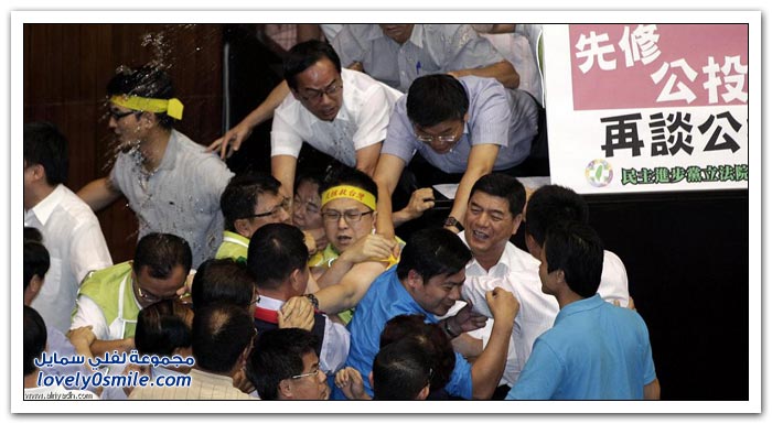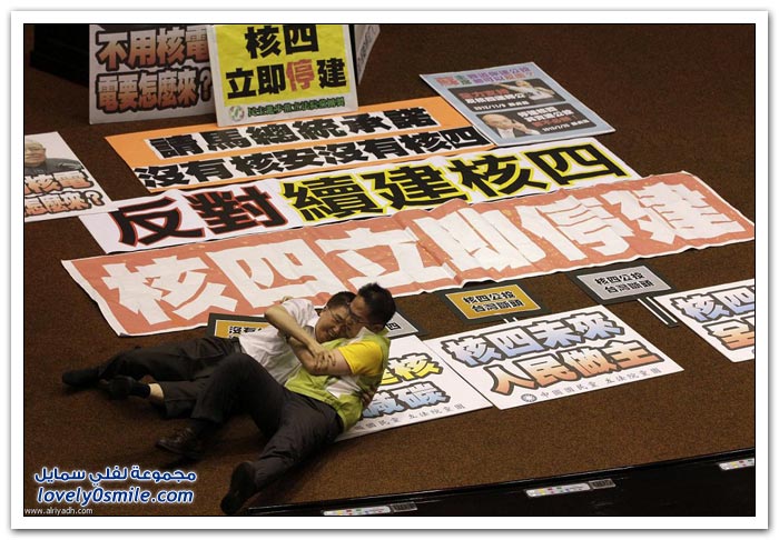 نشب شجار بين النواب في البرلمان التايواني بسب إجراء استفتاء على بناء محطة رابعة للطاقة النووي