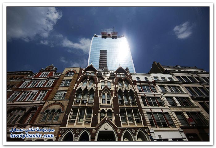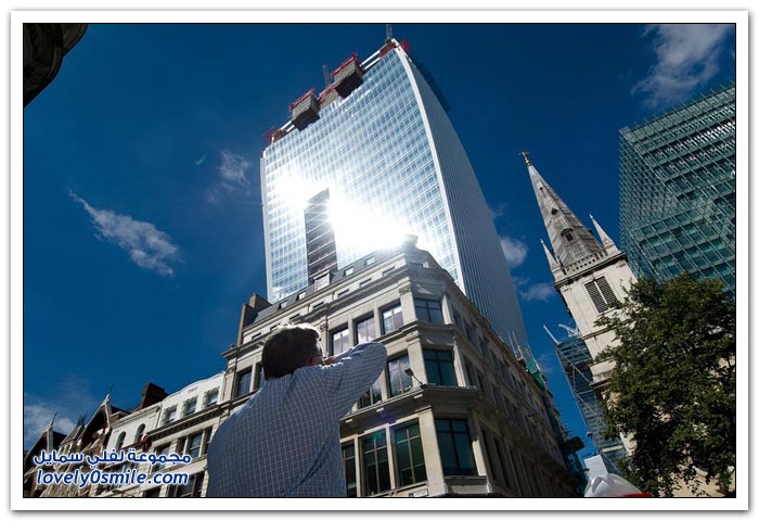 * ناطحة السحاب الجديدة التي ما برحت ترتفع في سماء الحي المالي في لندن، والتي أطلق عليها اللندنيون اسم "ووكي توكي"، فاجأت سكان المنطقة المجاورة بقدرتها العجيبة على إذابة السيارات وحتى قلي البيض.